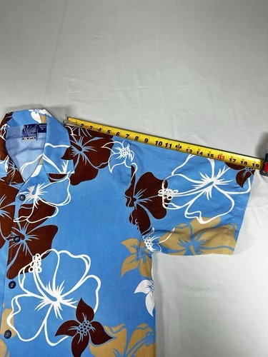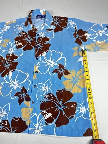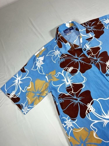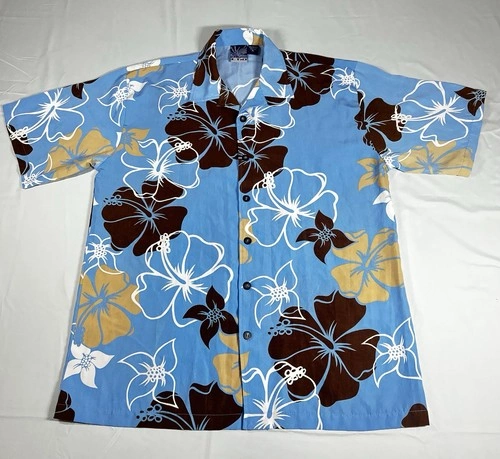 C-TWO Man’s Shirt Size XL / Hawaiian Style / Blue & Brown / Flor