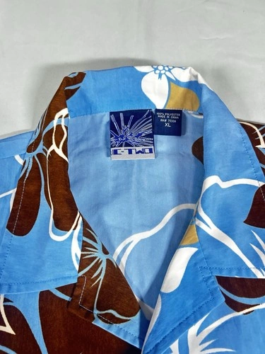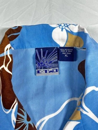 This C-TWO Man's Shirt in size XL features a Hawaiian style design in blue and brown colors with a floral pattern. Made of polyester, this button-up shirt is perfect for the summer season. It's a stylish choice for casual occasions.