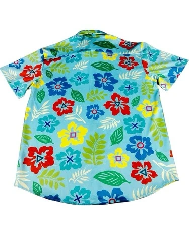This unisex T-shirt features the PlayStation logo in a Hawaiian design. It's a vintage piece from the 2000s, made of polyester material in a vibrant multicolor palette. With a regular fit in size M, this shirt is perfect for fans of both PlayStation and Hawaiian culture, making it a unique and stylish addition to any wardrobe. The PlayStation product line adds a touch of nostalgia.