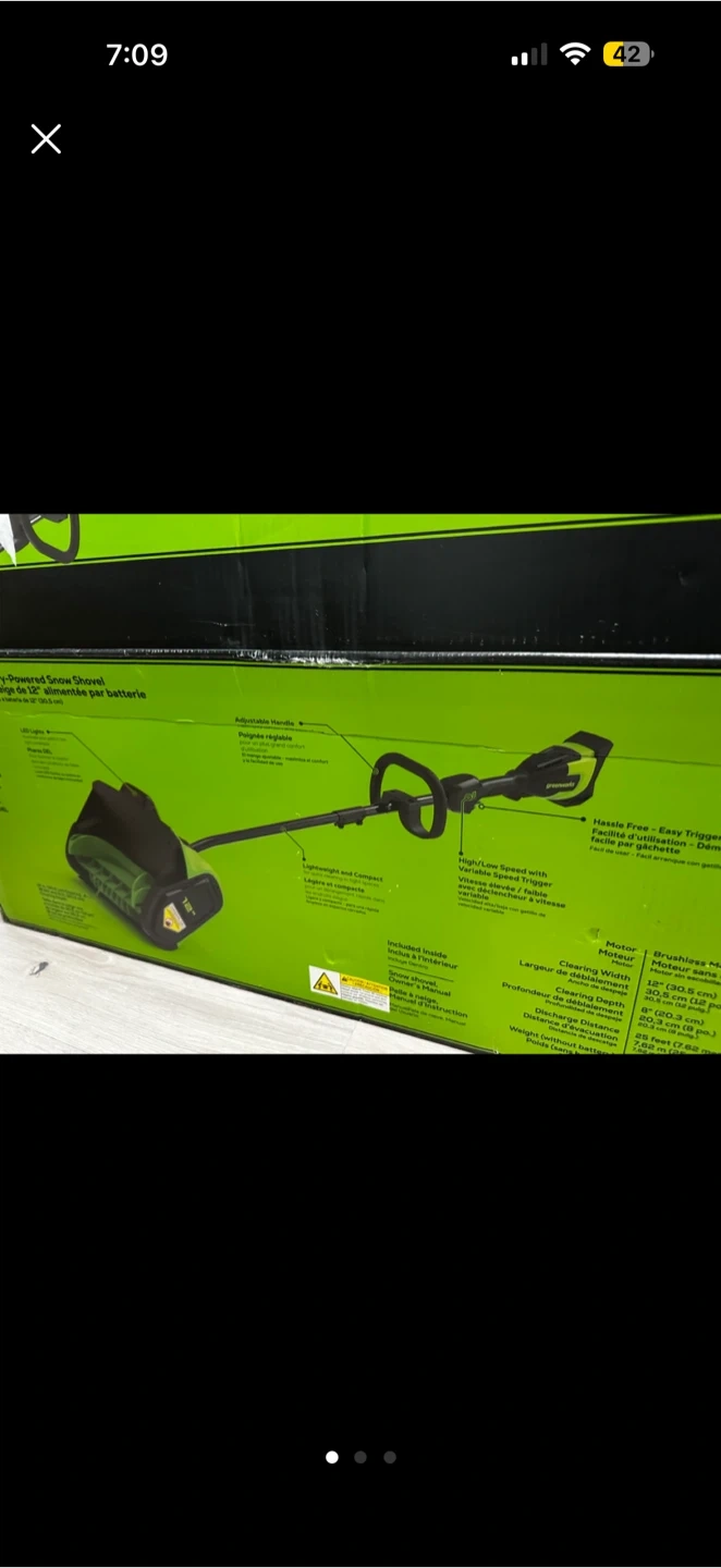 This is a Greenworks 40V cordless electric snow shovel, perfect for clearing driveways and walkways. It features an adjustable chute and a lightweight, compact design for easy handling. The brushless motor ensures efficient clearing.
