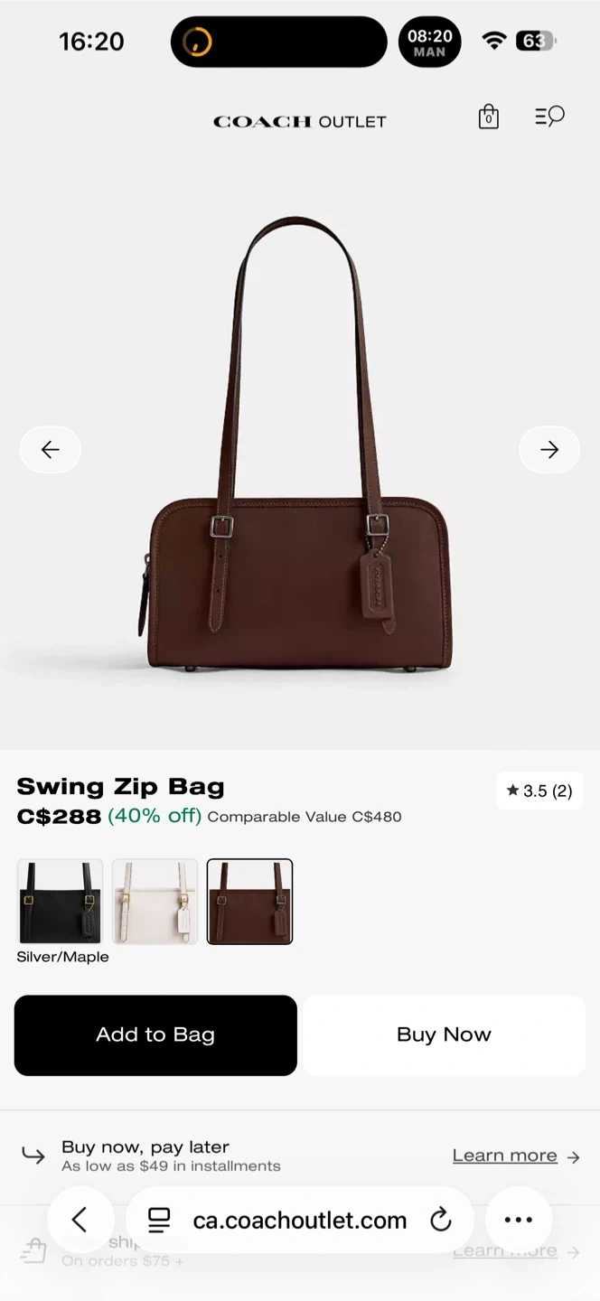 Coach Leather Swing Bag 20
