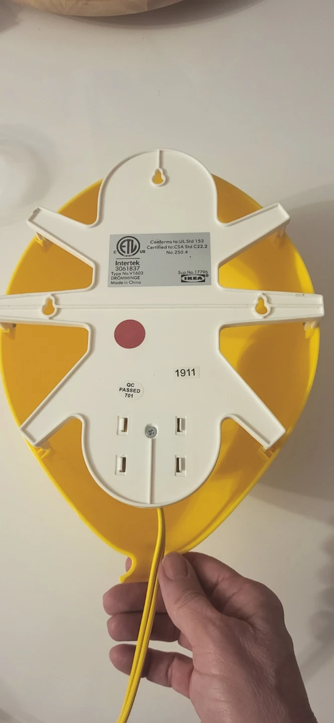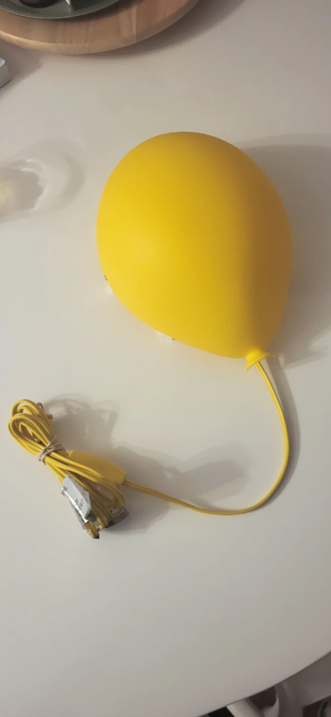 This is an IKEA balloon-shaped lamp. It's a fun yellow colour. It plugs into a standard outlet. It's a great accent light for a child's room! Or anywhere... you can attach to a plug to automatically turn on to wake you gently in mornings too... make waking up a pleasant experience 😌