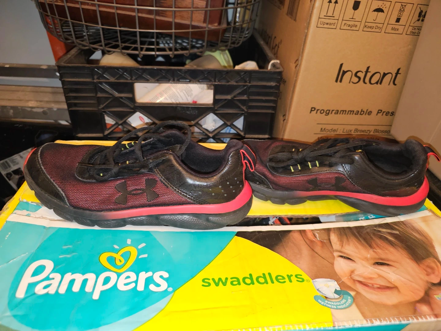 Under Armour Running Shoes Black Red Youth Size