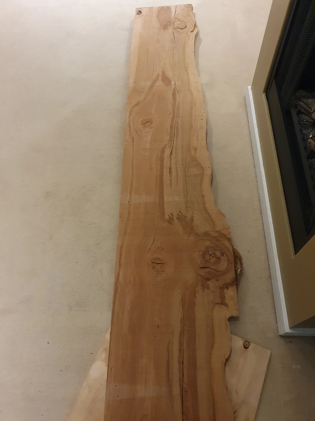 Natural live edge wood slab. Unique grain patterns and character. Ready for your next woodworking project or as a rustic decorative piece. Great for a shelf or tabletop!