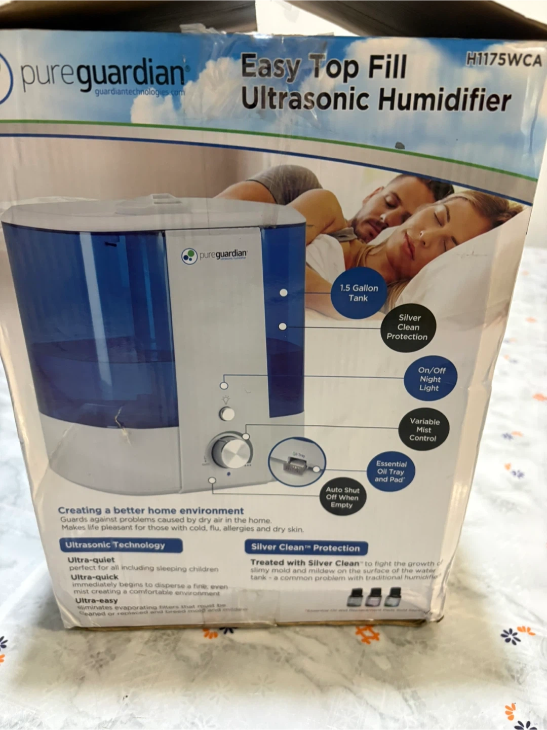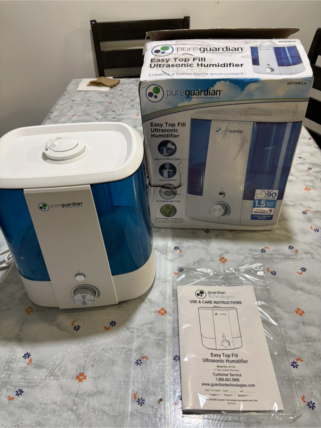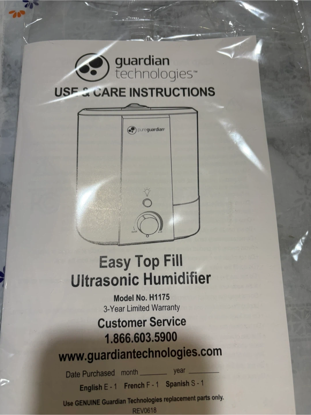 PureGuardian Easy Top Fill Ultrasonic Humidifier (Model H1175).