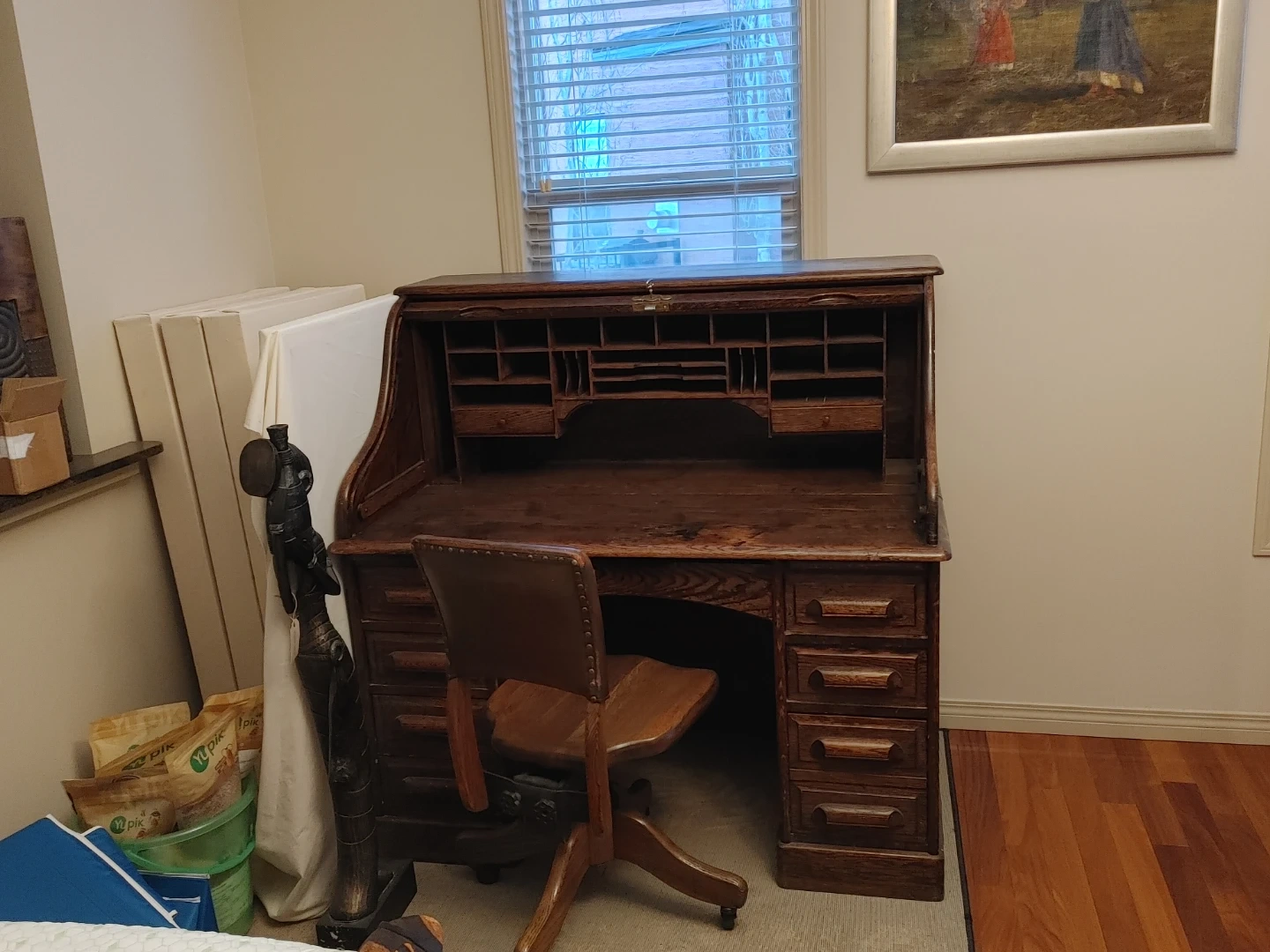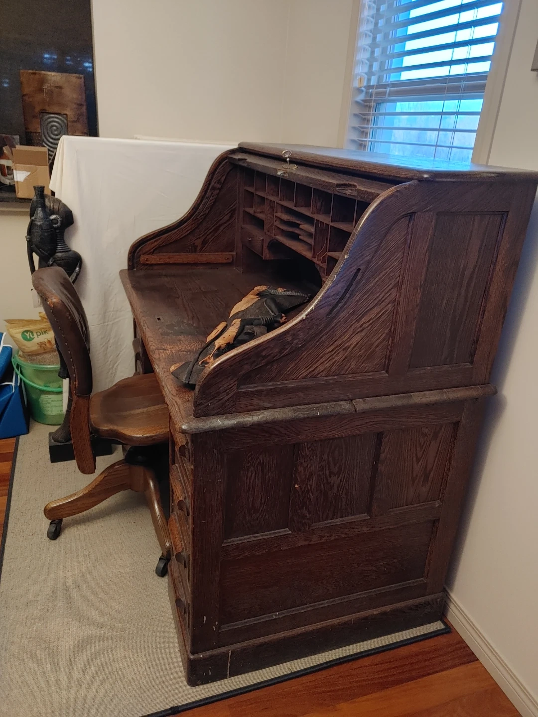Antique Oak Roll Top Desk with Chair from the 1900s