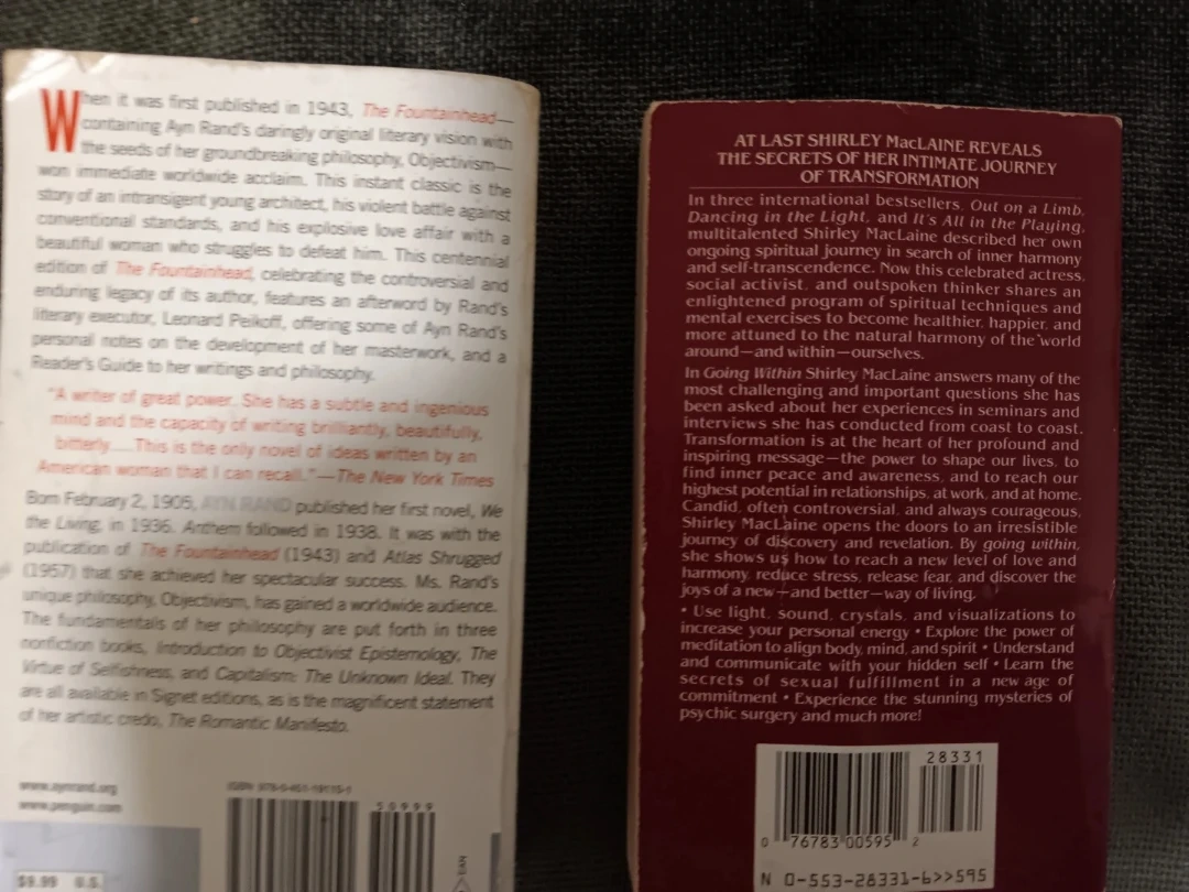 Ayn Rand The Fountainhead & Shirley MacLaine Going Within Books