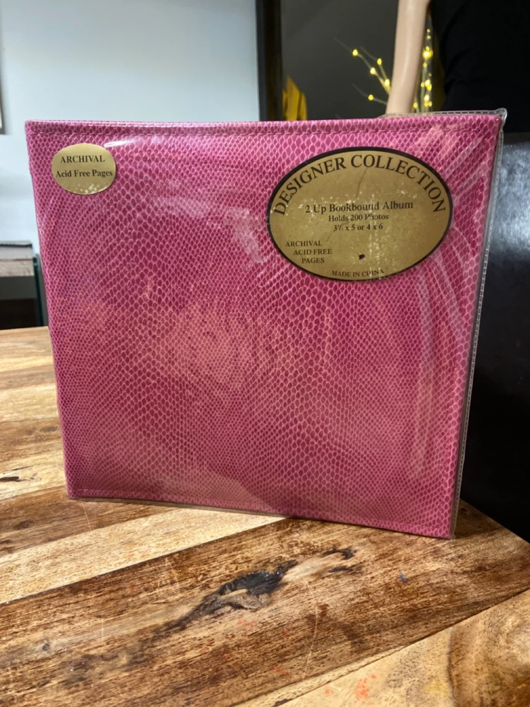 This is a Designer Collection 2-Up Bookbound album. It holds 200 photos and has archival, acid-free pages. The album is designed to hold photos that are 3.5 x 5 or 4 x 6 inches