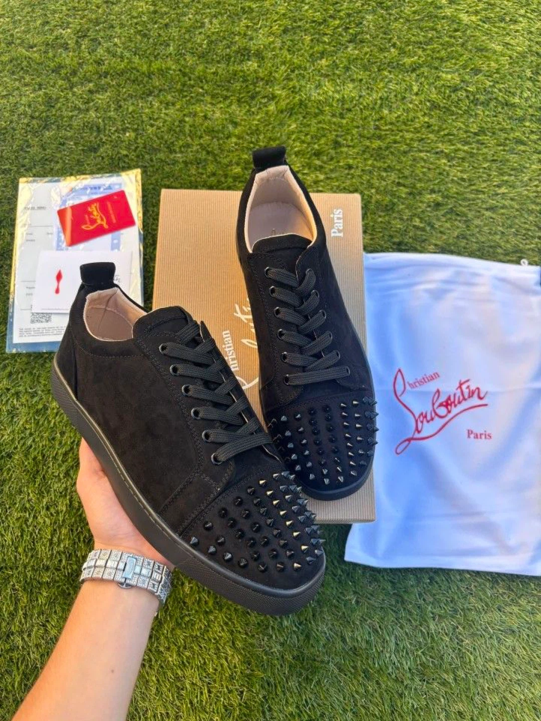 Christian Louboutin Black Suede Spiked Sneakers