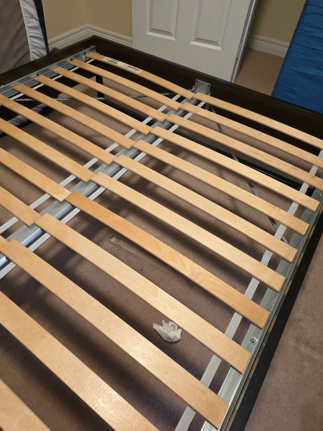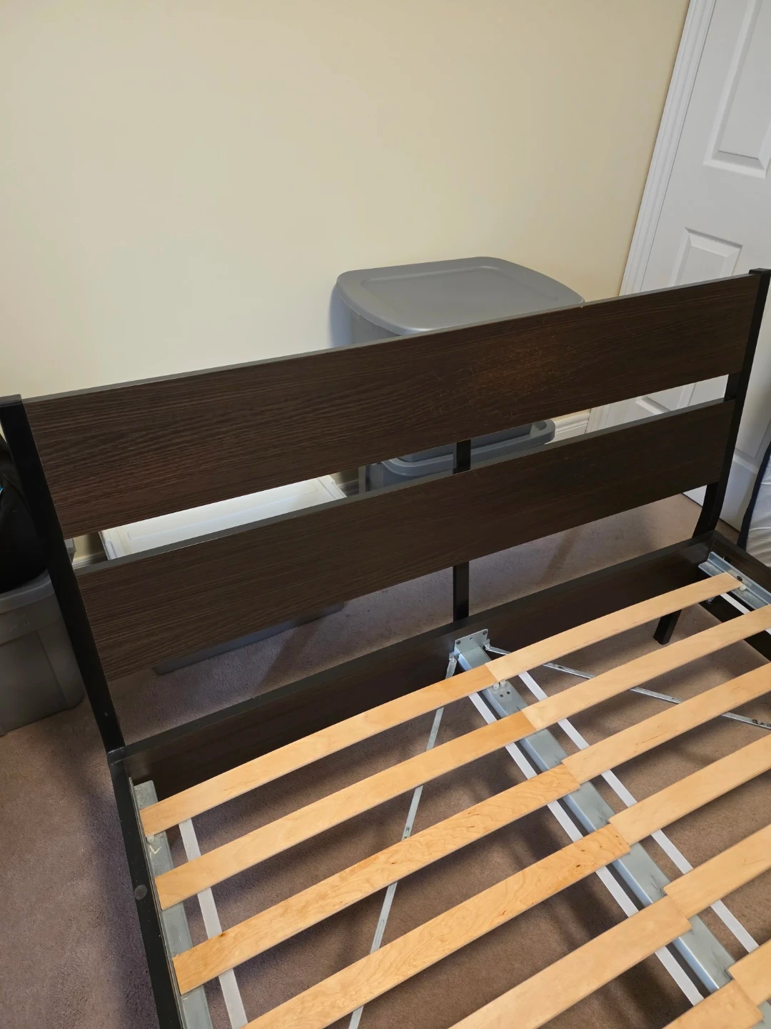 Selling my IKEA Trysil full/double bed frame, good condition, used for a couple of years in the guest room. Includes slats and center support beam, mattress not included. Has been dismantled so it's easy to take.