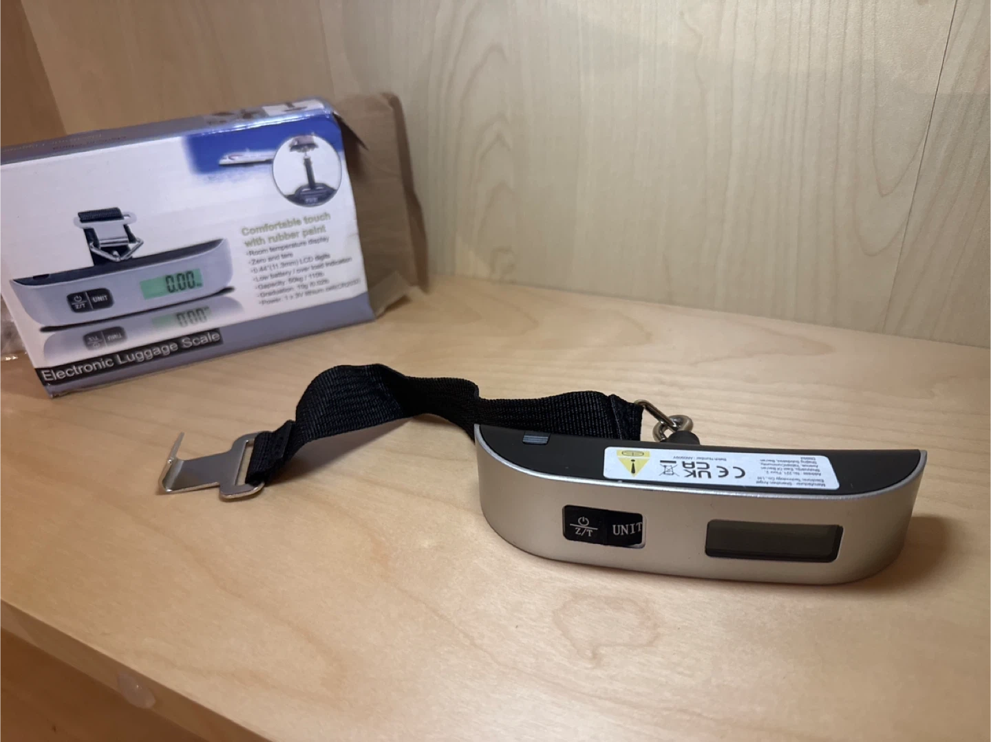 This electronic luggage scale helps you weigh your bags before your trip. It features a comfortable touch with rubber paint and an LCD display. The capacity is 50kg (110lb) and it has a graduation of 10g (0.02lb). This scale is useful for avoiding overweight baggage fees when travelling.