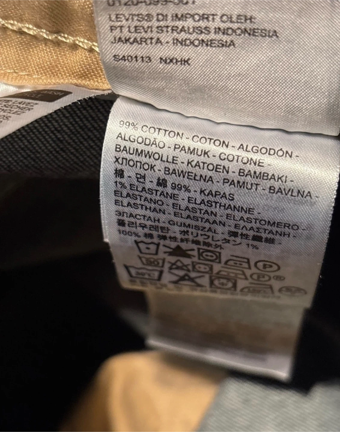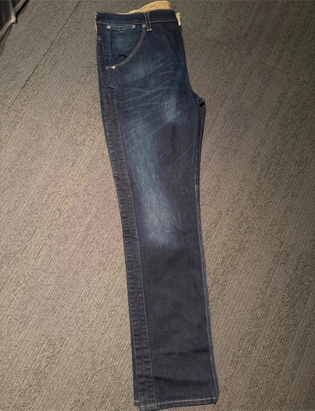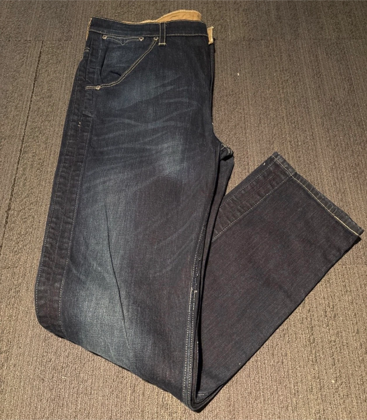 These are a used pair of Levi's 511 jeans in a size 38x34, offering a slim fit with a bit of room to move. They're in good condition. The classic dark wash makes them versatile for different styles.