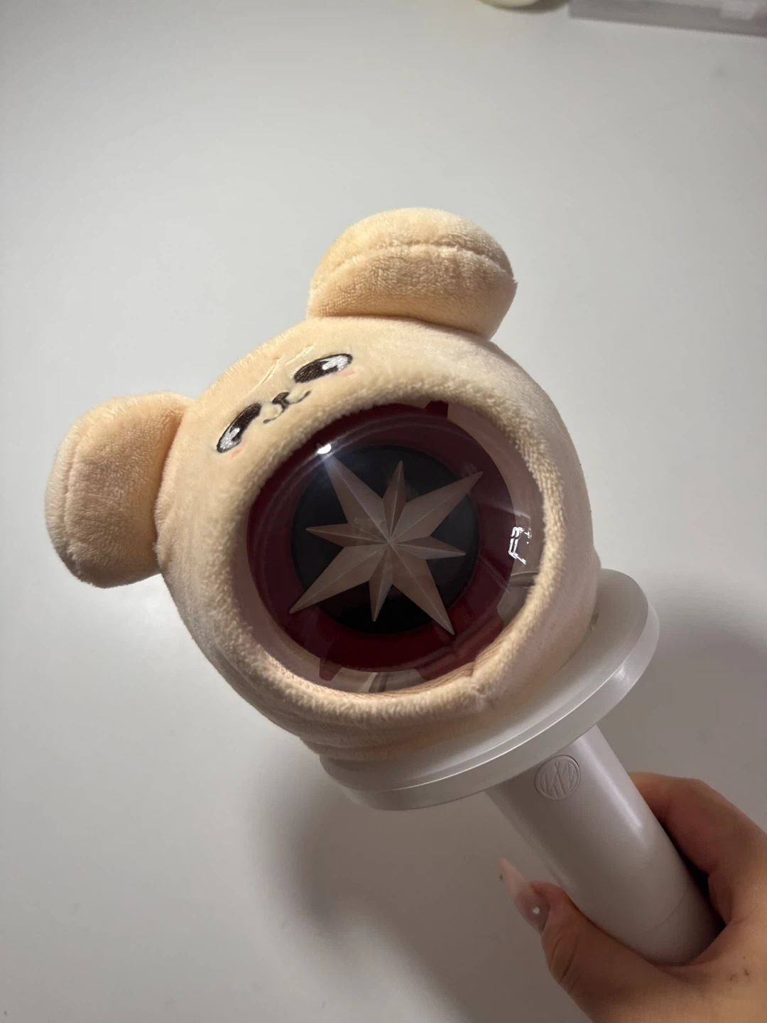 Super cute bear plush cover for your lightstick. It's soft and fits snugly around most standard lightsticks. Makes your concert experience even more adorable!