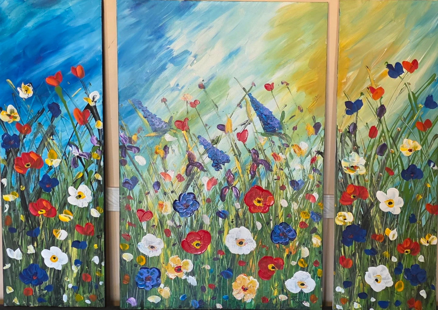 Wild flowers 3 canvas tow 12"x36 one 24"x36