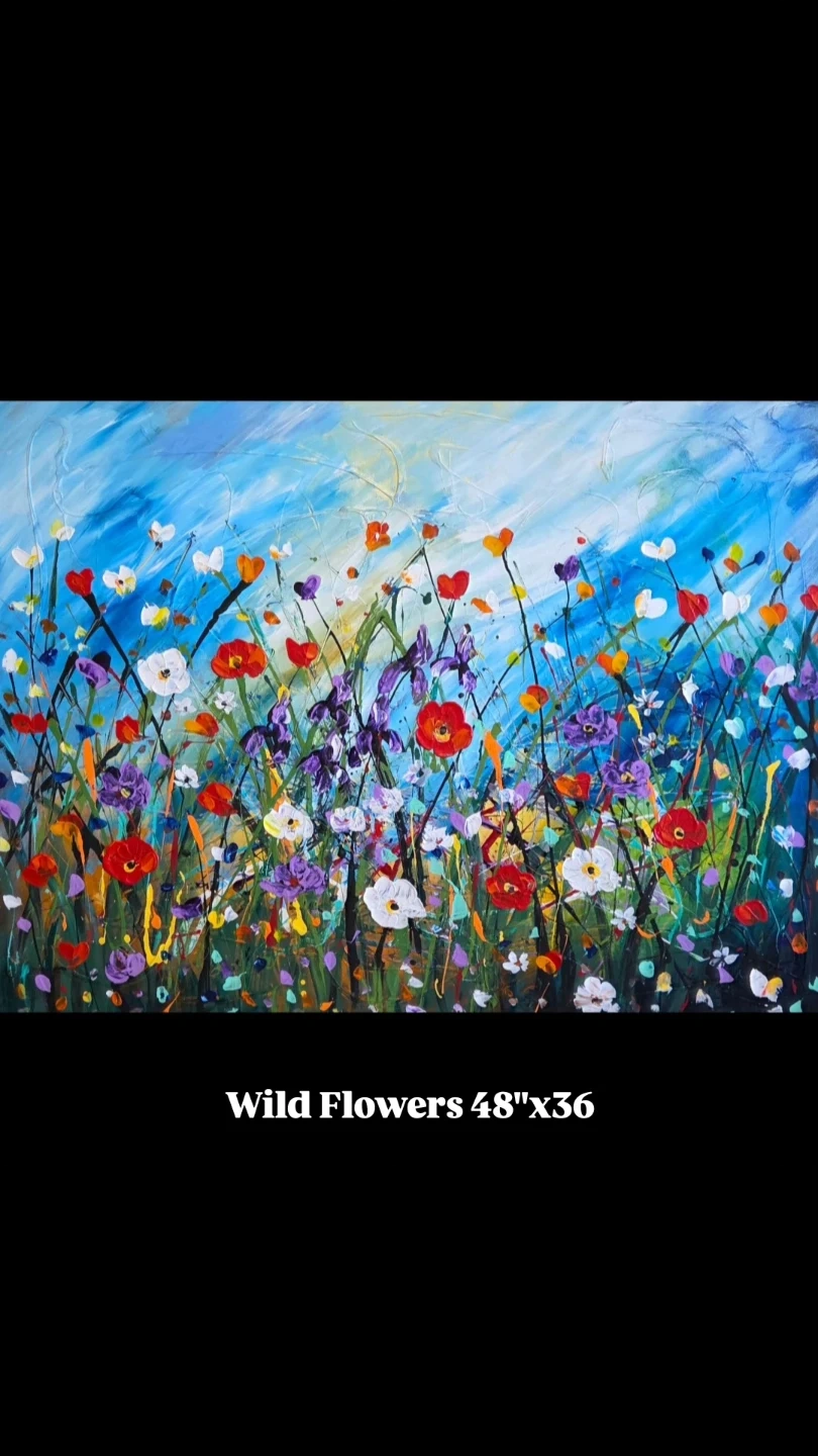 Original hand-painted painting by local artist Wild flowers 48"x36 by Zara kader Acrylic on canvas with varnish protection Ready to hang to view more of my artwork go to my Instagram zkart2021 Custom order painting available Abstract modern cubist landscape cityscape flowers