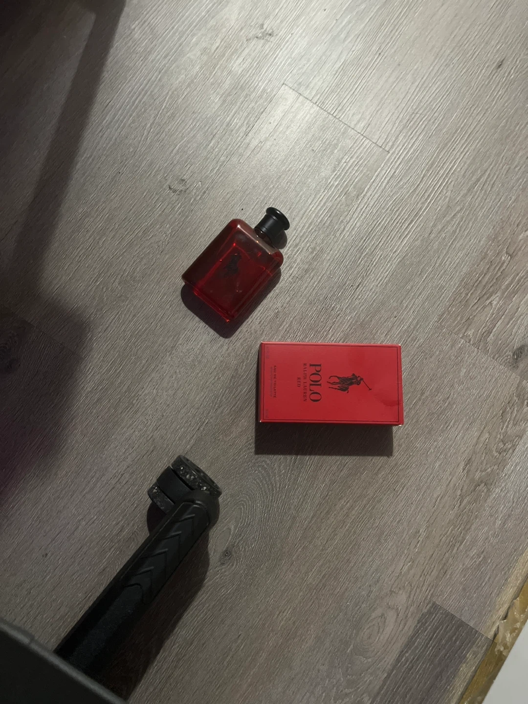 This is a bottle of Ralph Lauren Polo Red Eau de Parfum. It's a men's fragrance known for its bold and spicy scent profile. The bottle is a striking red colour, matching the packaging.