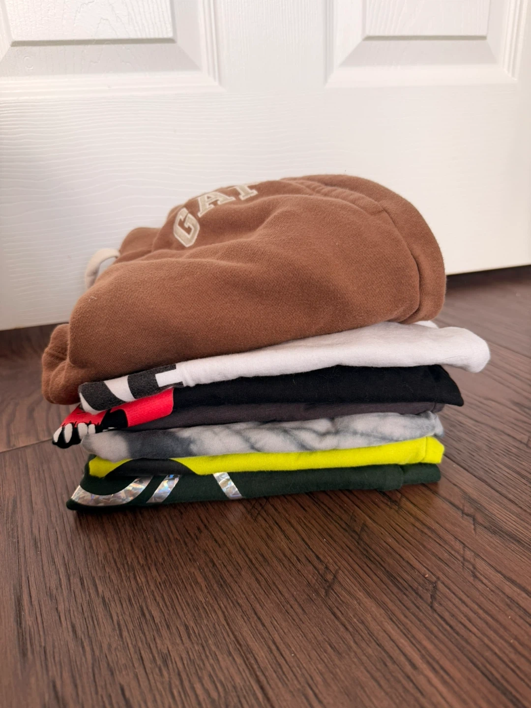 One pair of boys L size Gap joggers and 6 shirts (sizes from 7-12).