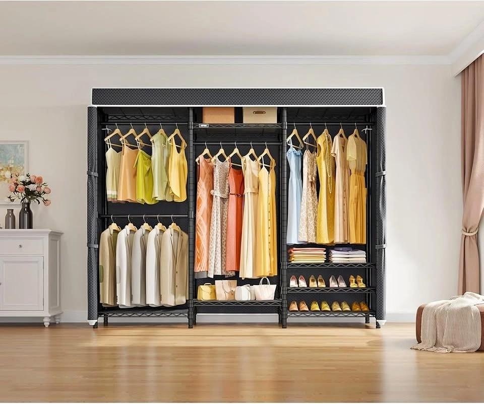 New Heavy Duty Covered Clothes Rack Portable Bedroom Armoire