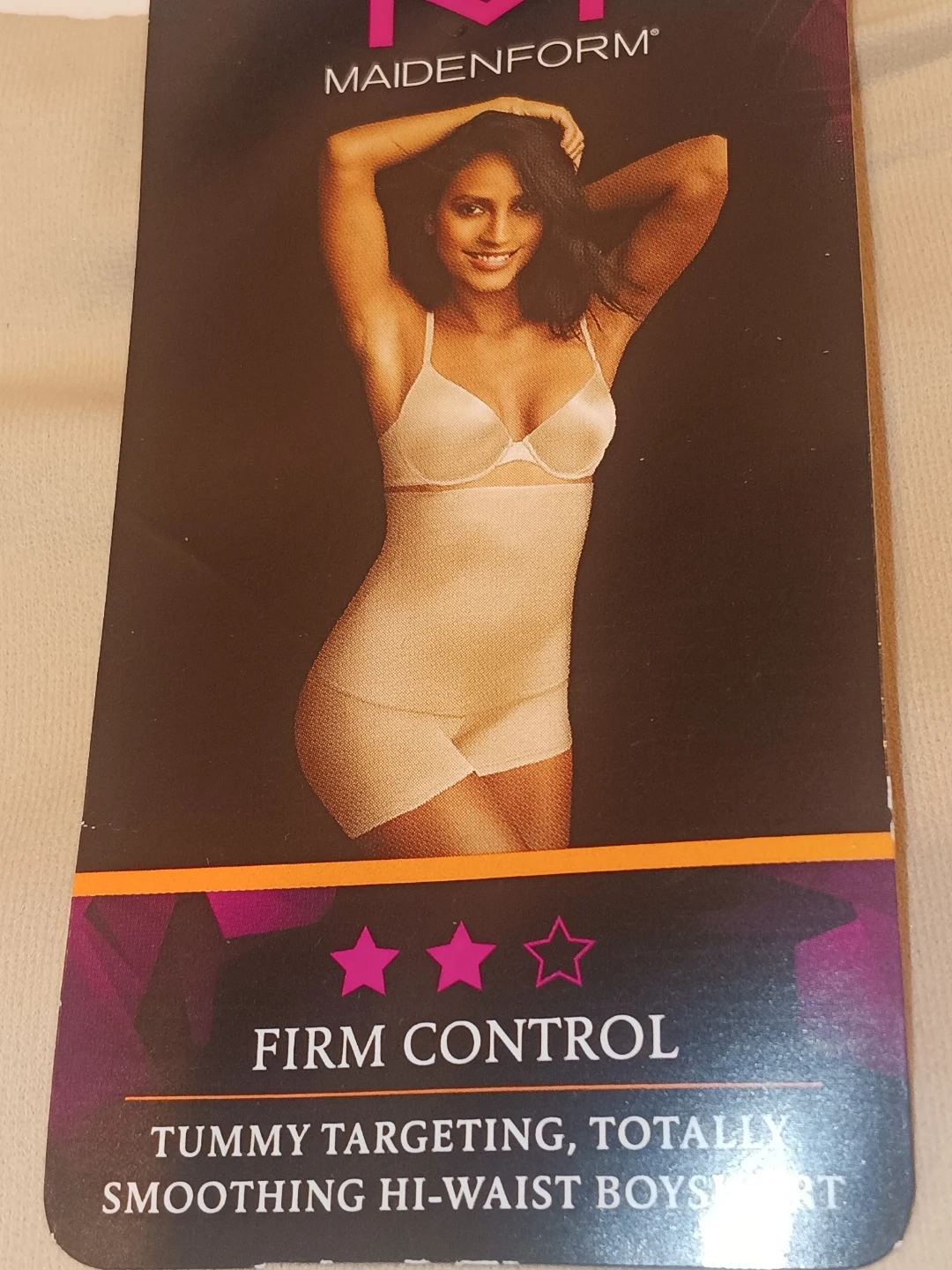 These Maidenform hi-waist boyshorts offer firm control for tummy targeting and smoothing. Made in Vietnam with a size XL/TG/EG. It's designed for comfortable everyday wear.