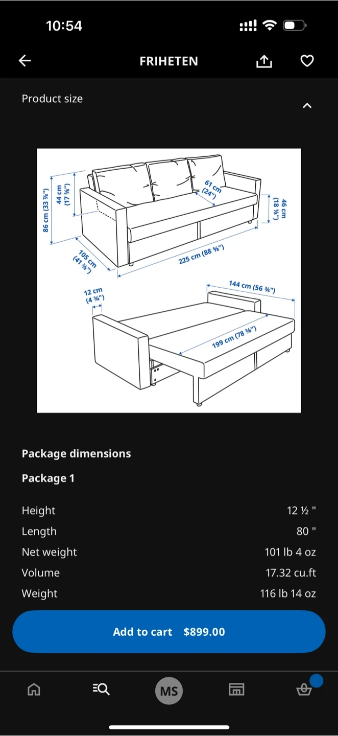 Ikea Friheten Dark Gray Sofa Bed with 3 Pillows