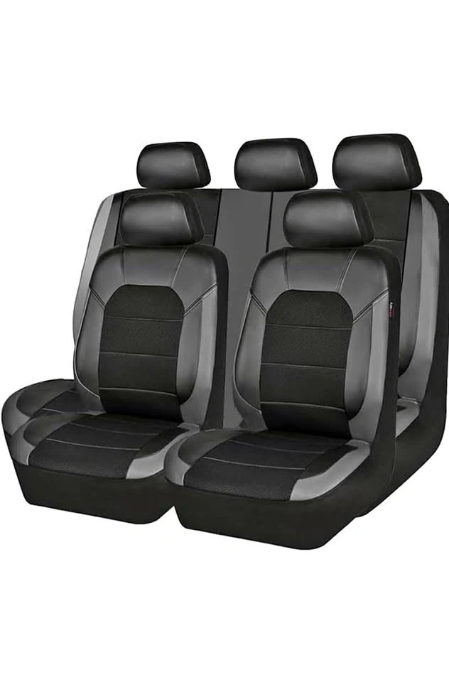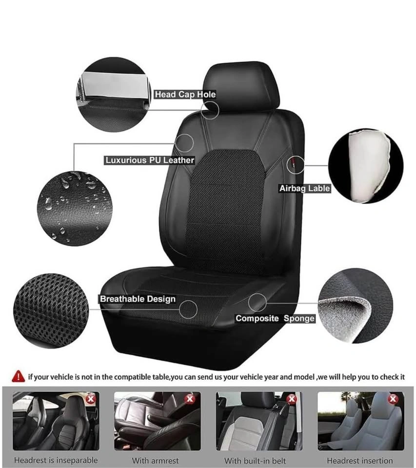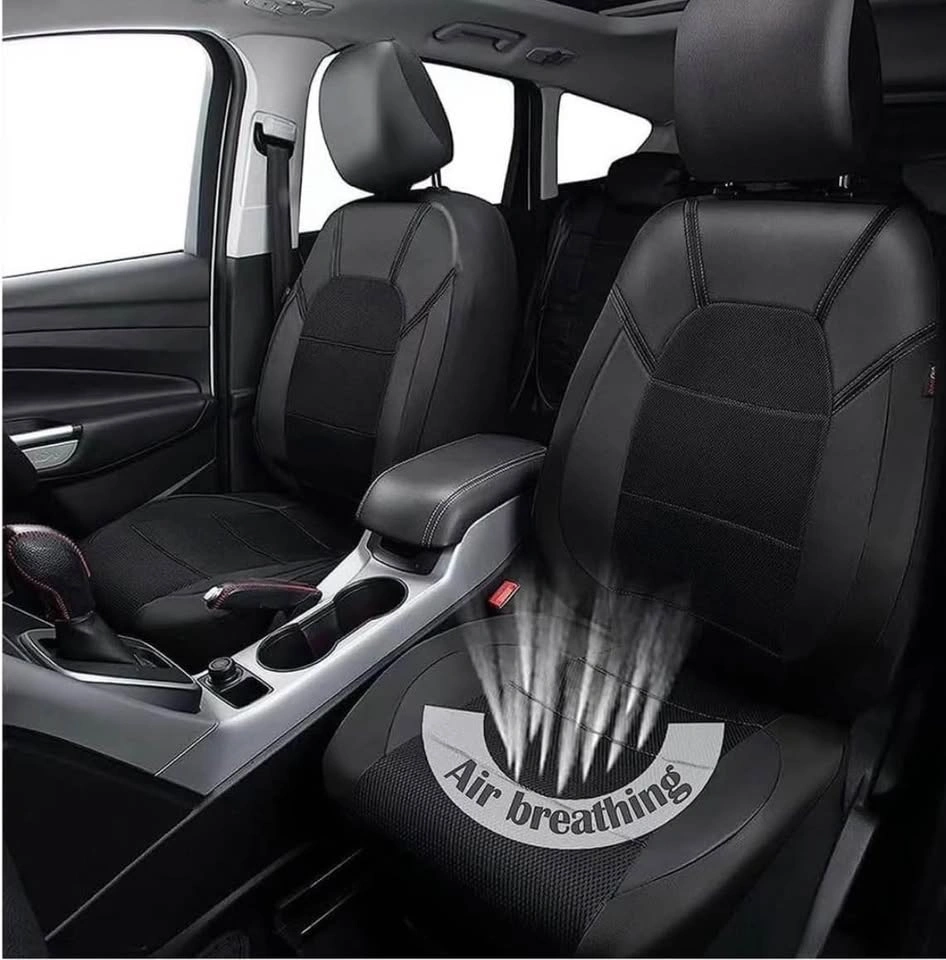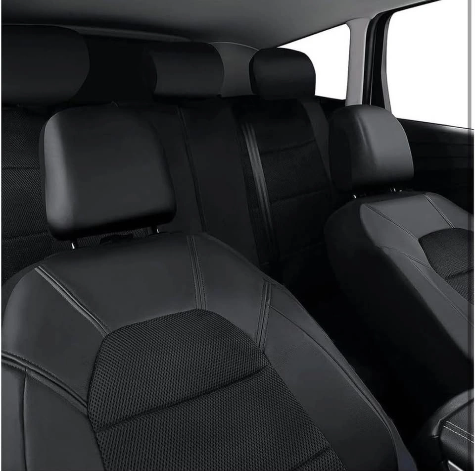 Full set of black leather waterproof and breathable seat covers for Nissan Kicks (P16) models from 2019 to 2024. These seat protectors are designed to fit your car perfectly.