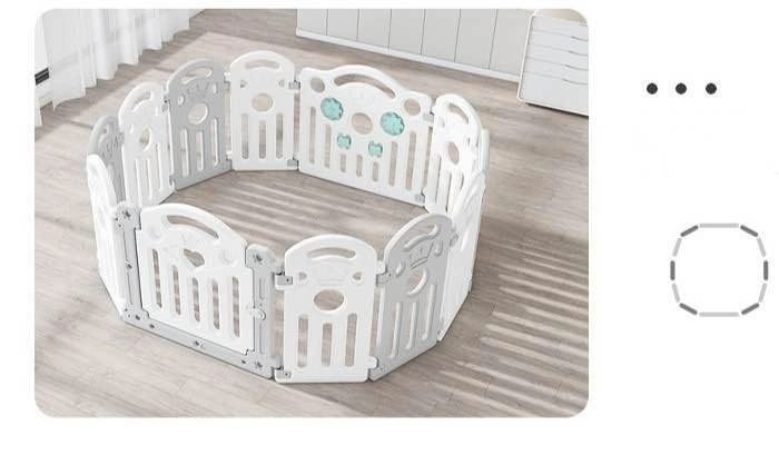 This is an extra large baby playpen with 14 panels and 2 gates. It provides a safe and spacious area for your little one to play. Feel free to message if you have any questions!