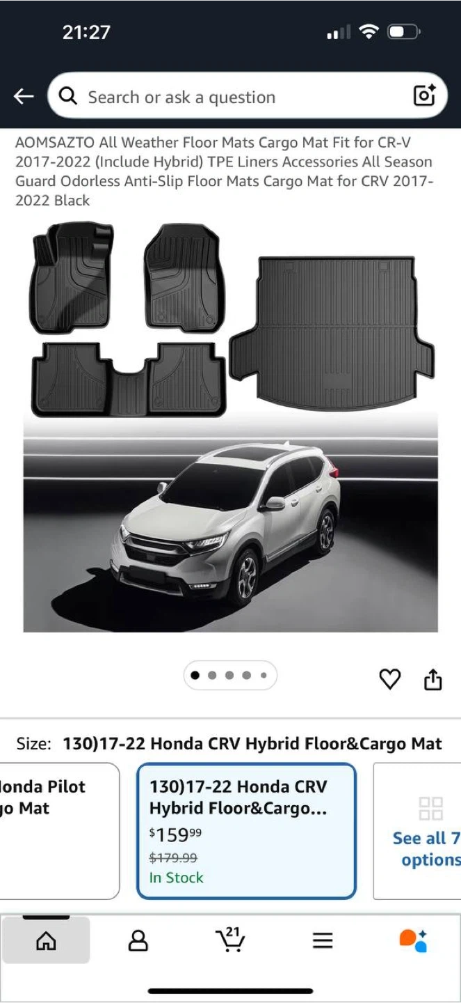 AOMSAZTO All Weather Floor Mats + Cargo Mat for Honda CR-V 2017โ2022 โ NEW
