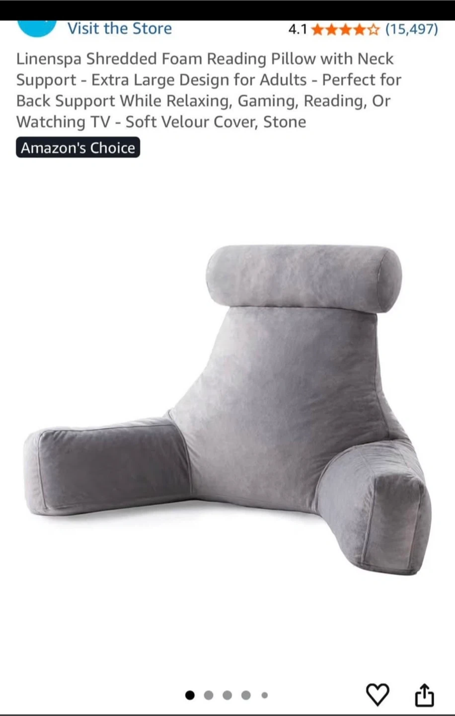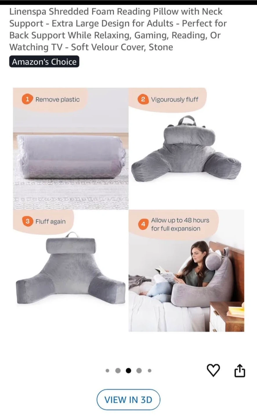 This Linenspa reading pillow offers extra-large support with a neck pillow and with stone colour. The pillow features measurements: see pictures.