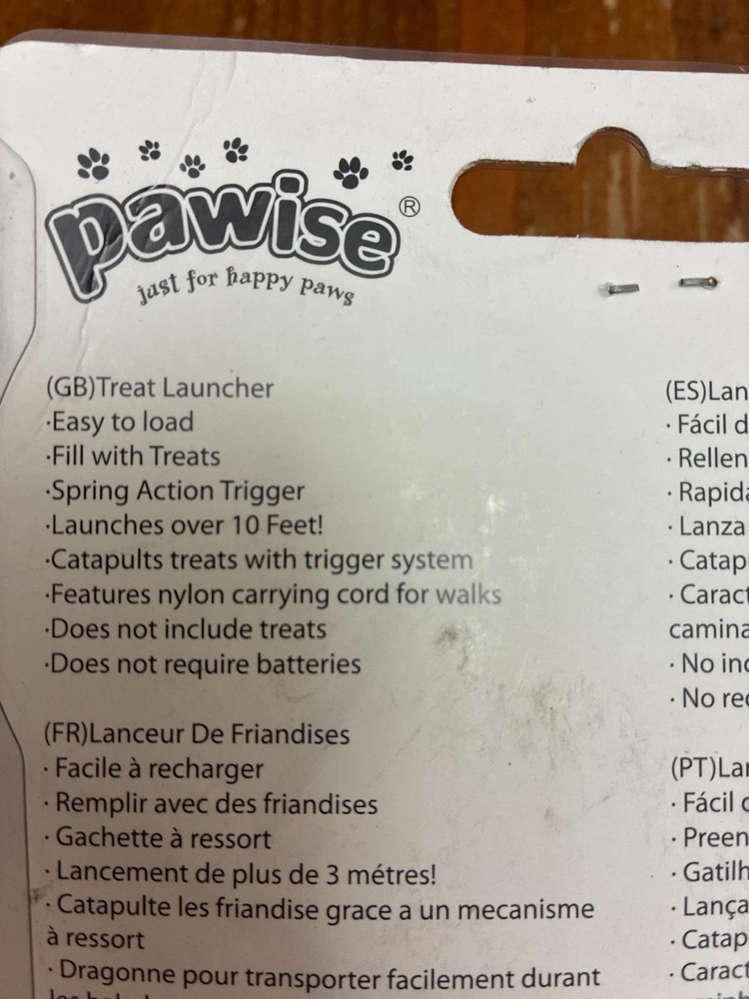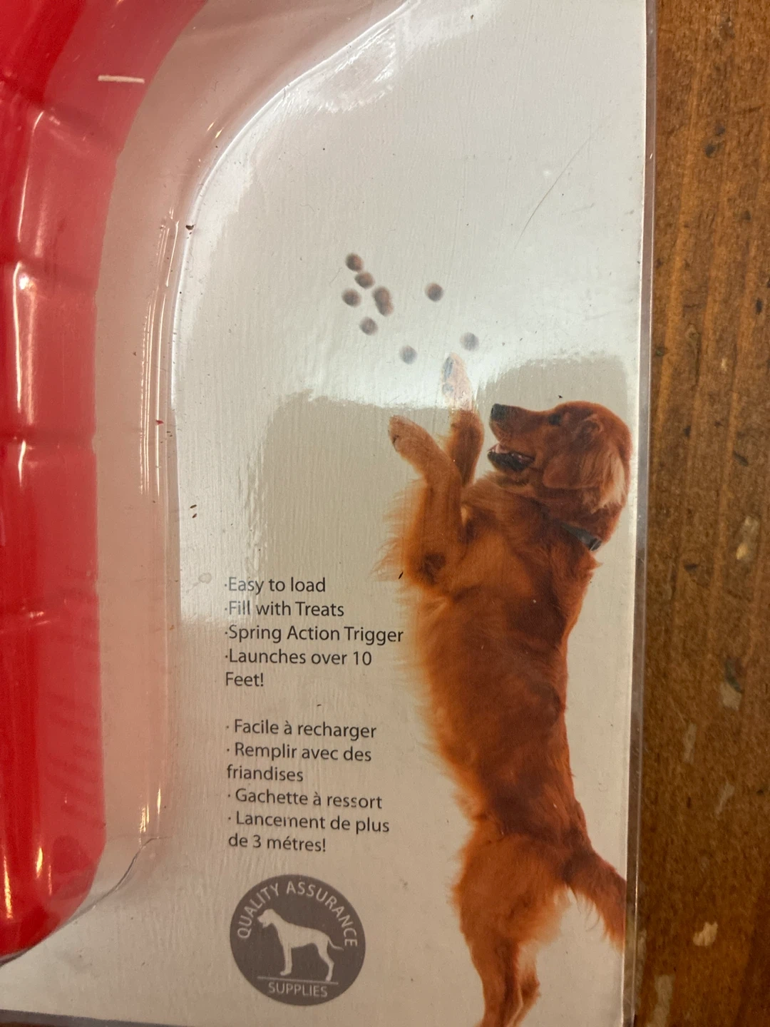 This Pawise treat launcher is easy to load and features a spring action trigger. It launches treats over 10 feet! A nylon carrying cord is included for walks