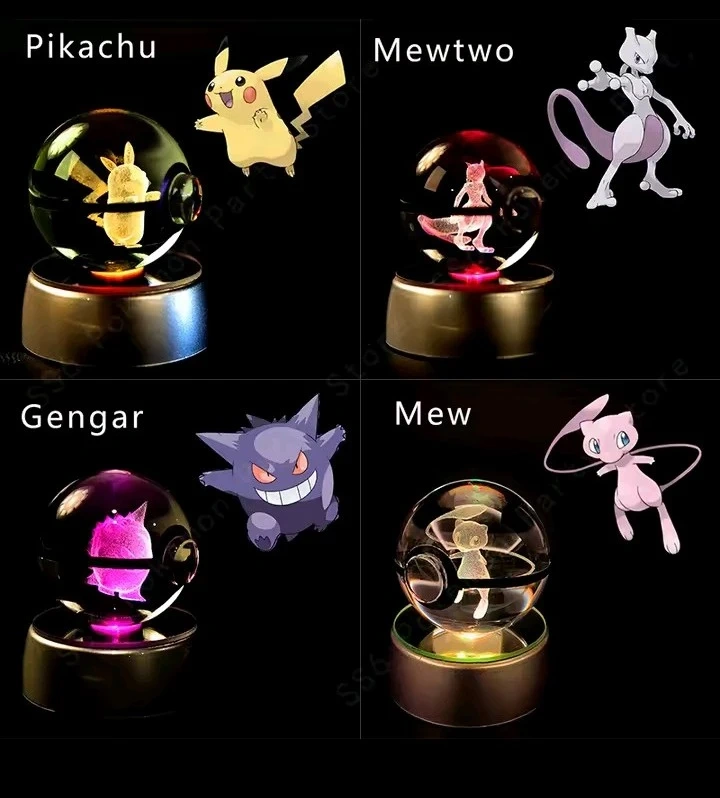 This crystal ball night light features various Pokemon characters. It's a great decorative piece for any fan's room. The ball is approximately 5cm in size. It's powered by a base that lights up the crystal ball.