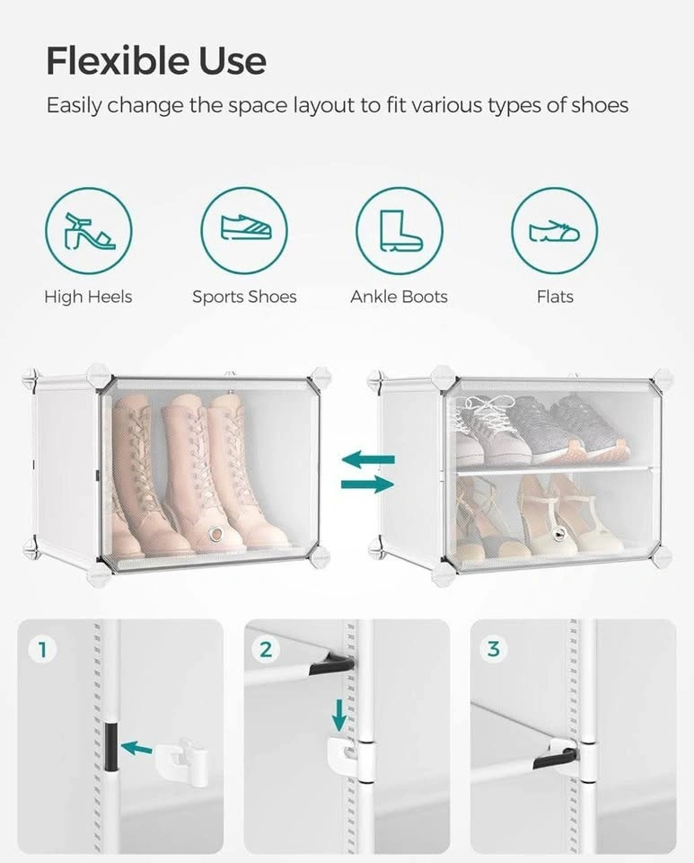 Keep your entryway or closet neat and organized with this SONGMICS 10-tier shoe storage cabinet. Designed to hold up to 40 pairs of shoes, it’s perfect for families or anyone who wants a clean, clutter-free space. Brand new, never assembled – still in the original box. The adjustable design allows you to customize the shelves for sneakers, flats, heels, or boots.