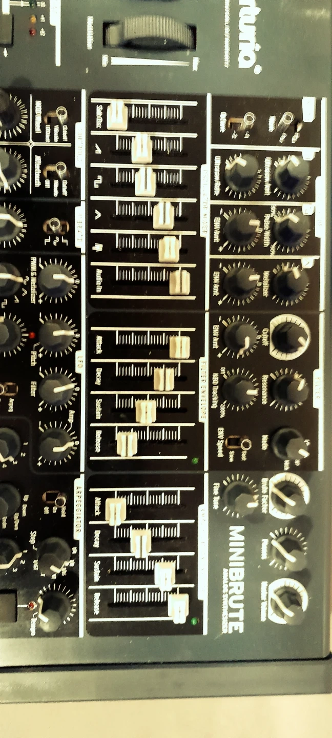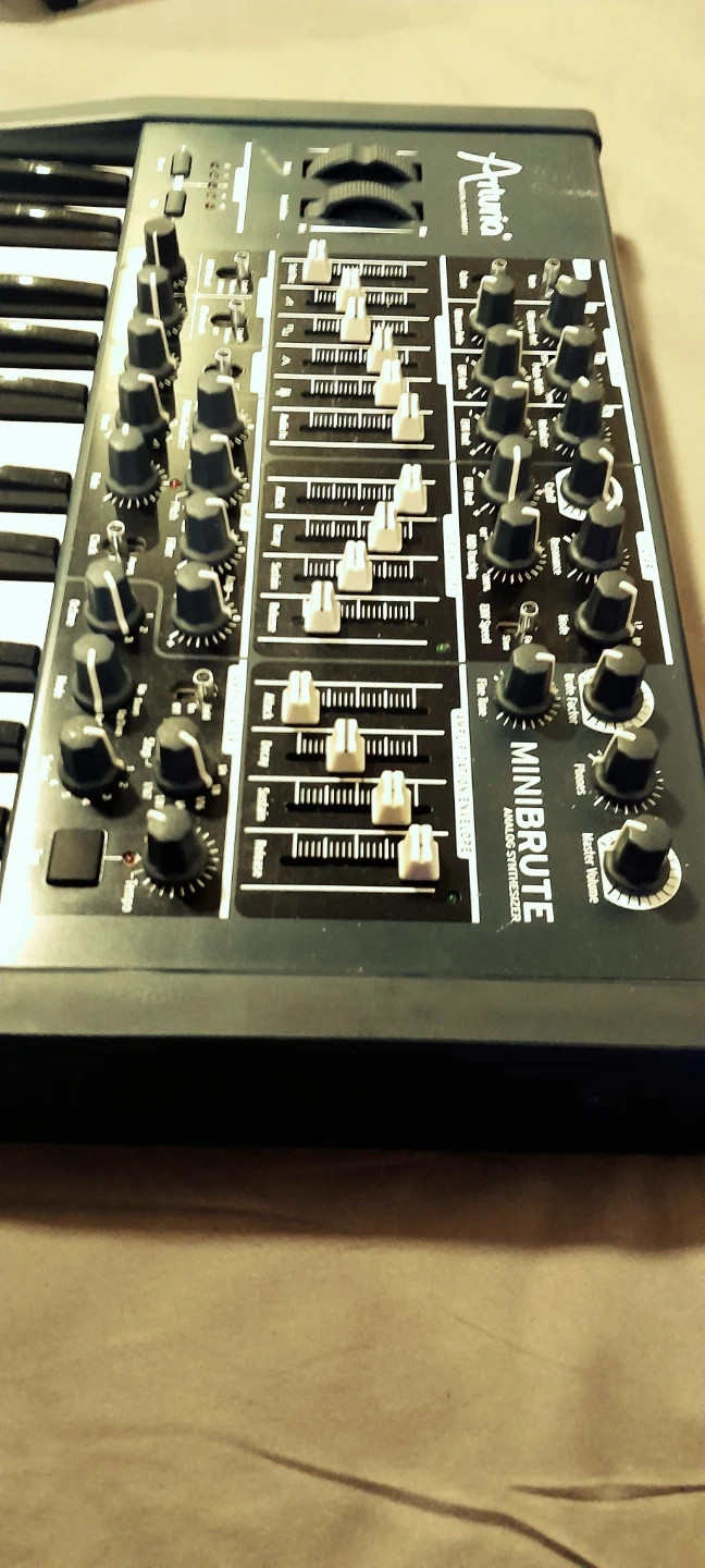 This is the Arturia MiniBrute analog synthesizer. It features a mini-keyboard and various knobs and sliders for sound shaping. It has multiple output jacks including audio, master out, and CV gate out. USB and MIDI ports are also present. The original manual is included and it's written really well, especially useful if your interested in learning about the history and application of subtractive synthesis. Also, included is a set of patch sheets to get you started with getting good bass, leads, and everything in between. Arturia recently released a VSTi plugin of this synth which has had an effect on raising the value of the original hardware version and so $400 buckaroos is the price my friends, please don't low ball me. Free delivery available if in Surrey and $20 extra if your in Vancouver or Coquitlam etc.... Thanks for looking!!