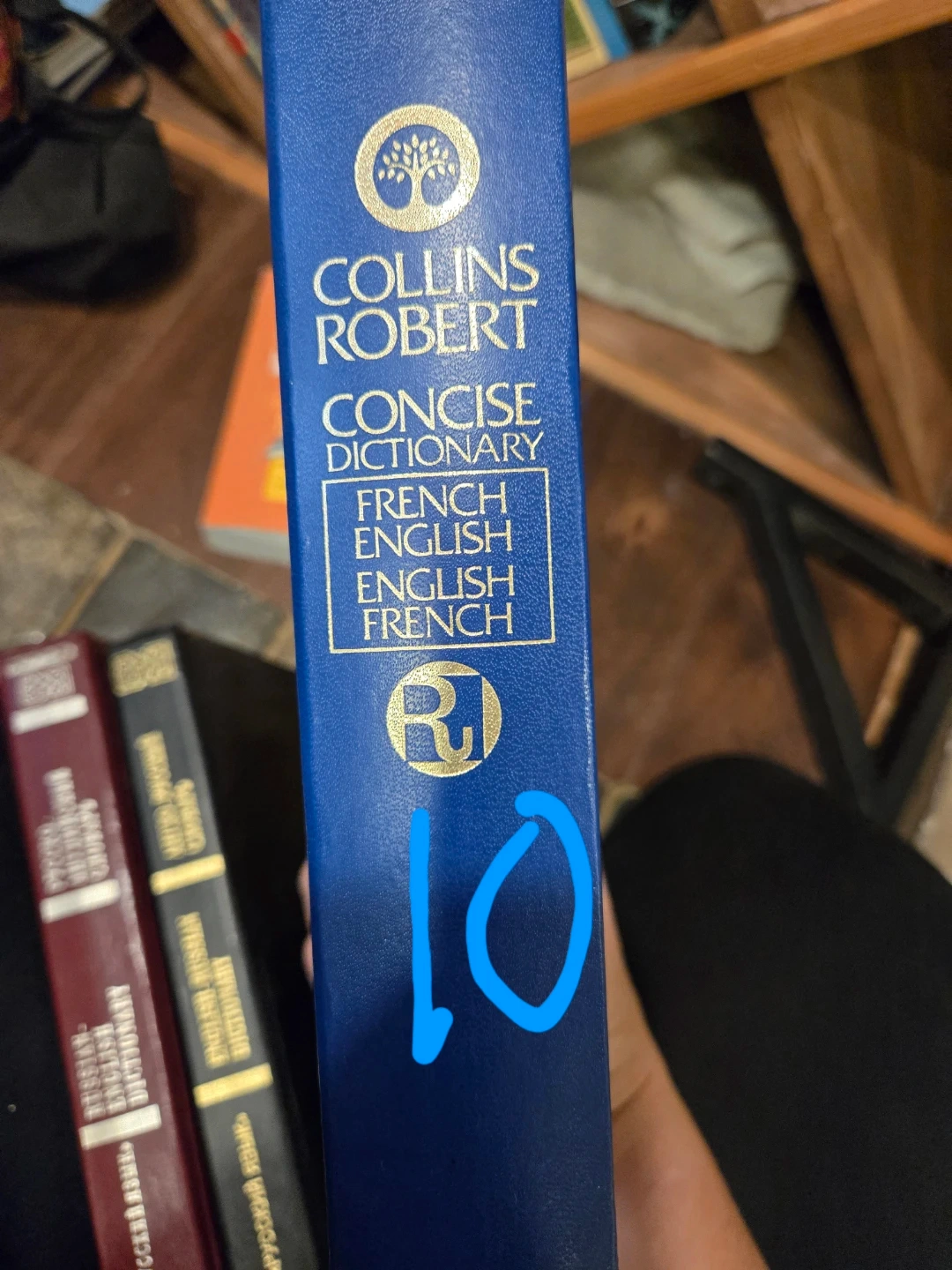 Collins Robert Concise Dictionary, French-English / English-French. This dictionary is helpful for building vocabulary and language skills. It covers two-way translations for French and English. See prices on the pics.
