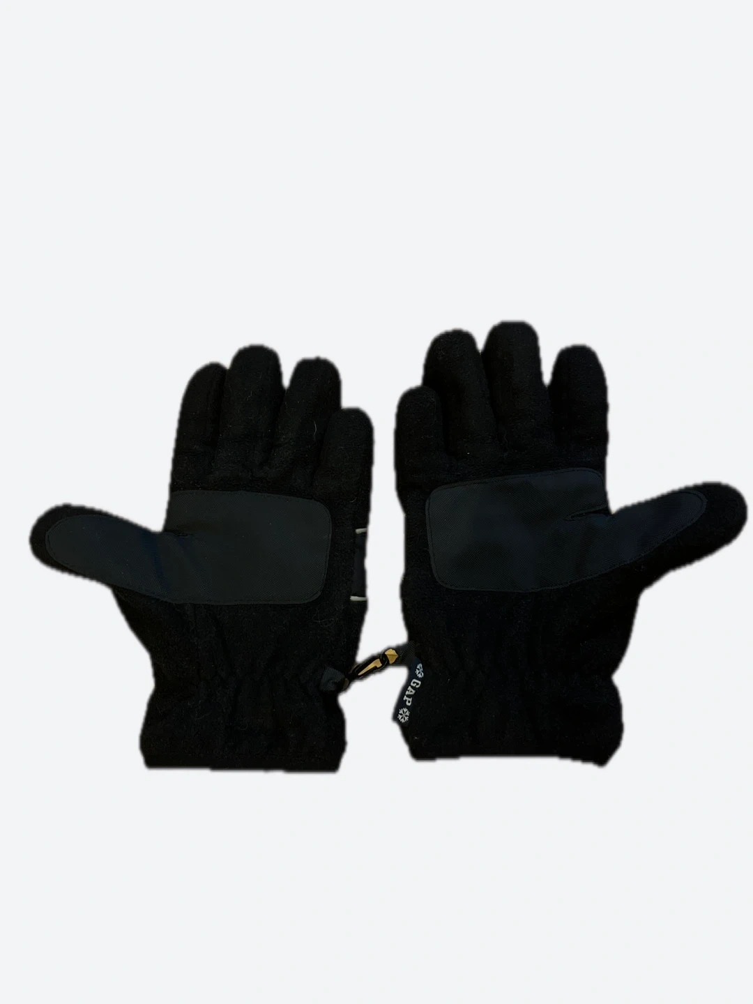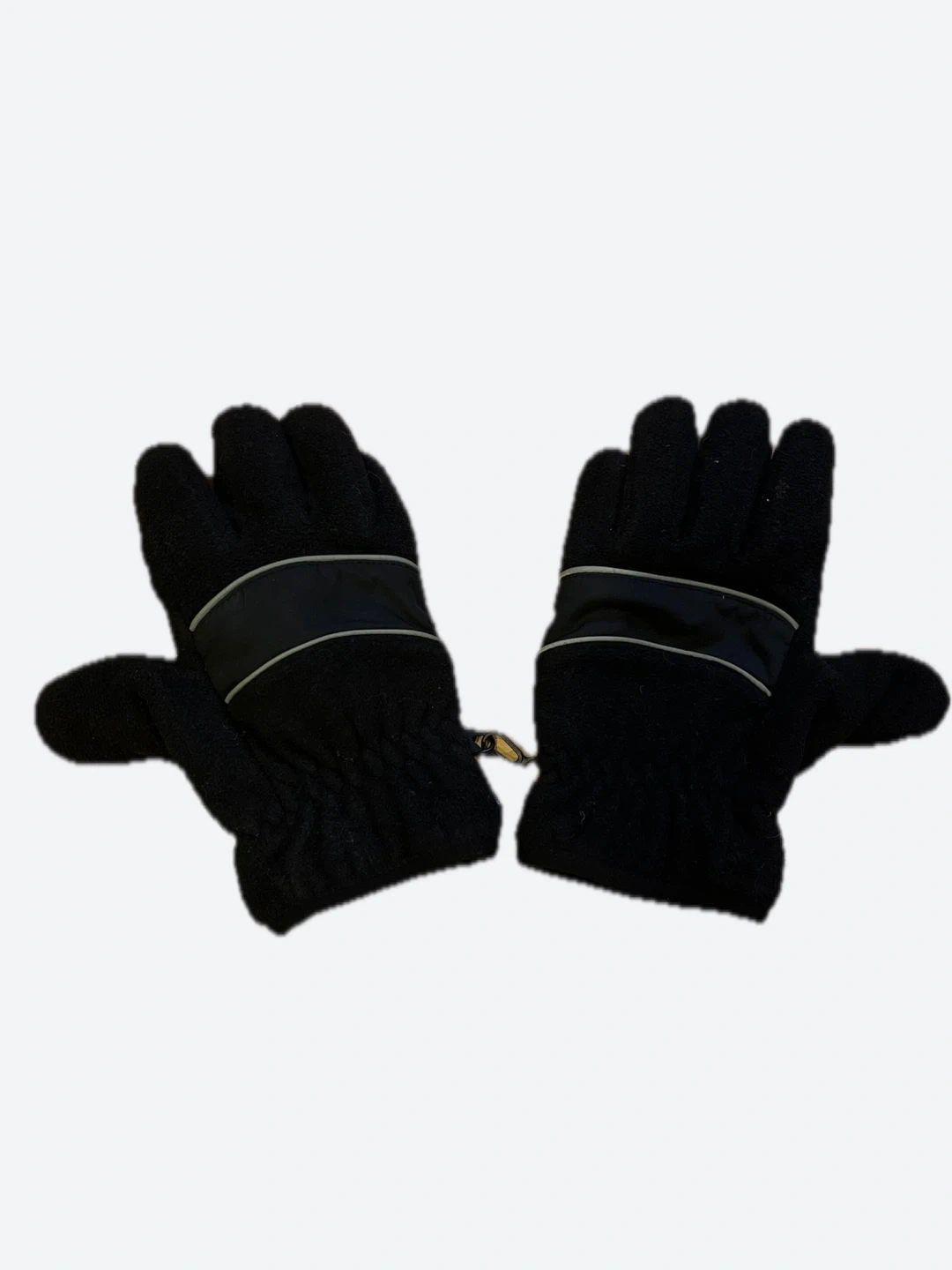 Warm fleece gloves from GAP. They're black with a size S tag. The shell is 100% polyester and the lining is also polyester. Great for keeping your kids hands cozy when it's cold out! Can fit also women’s small hand.
