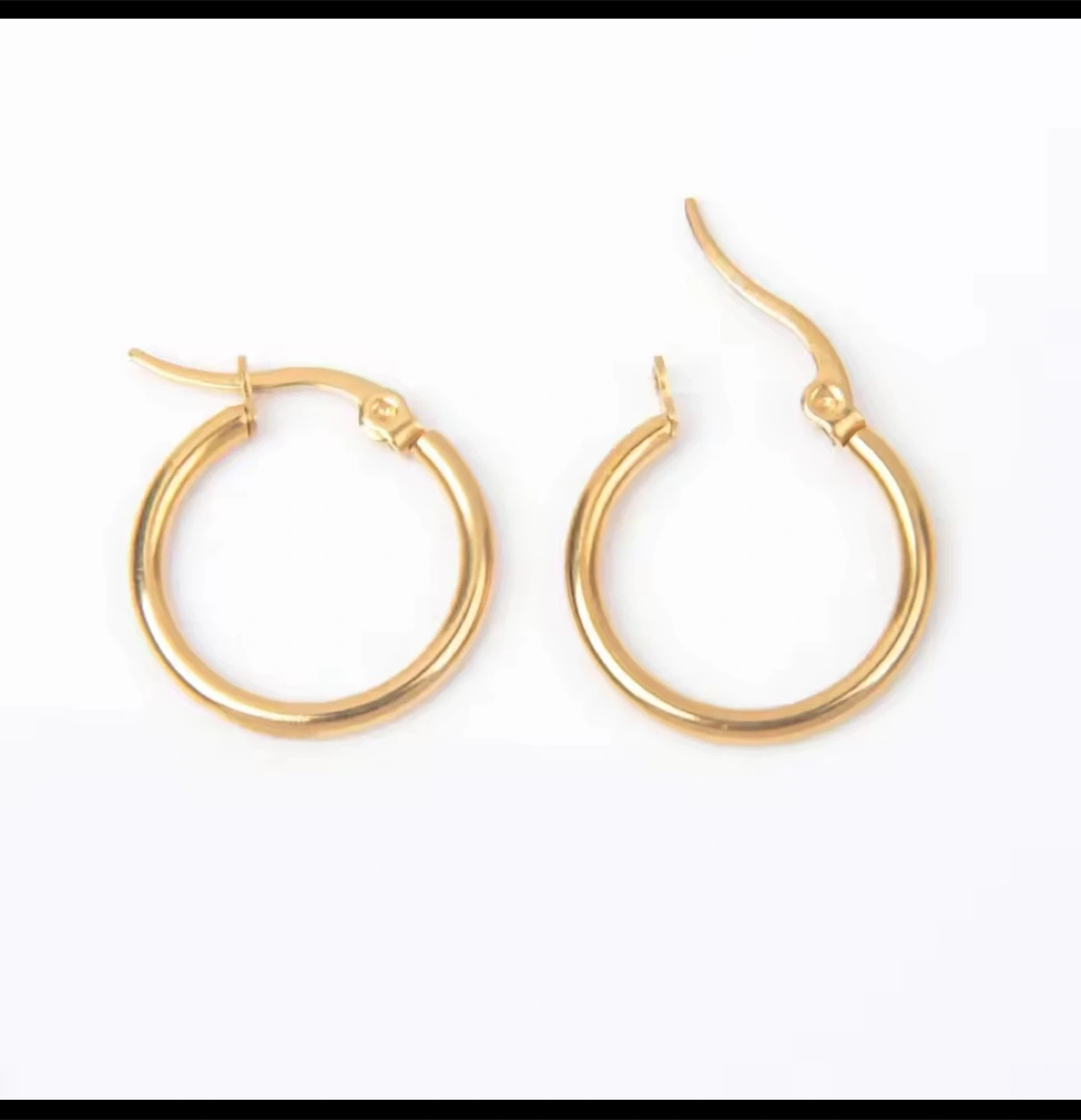 ✨ One pair of hoop earrings made from stainless steel, plated in 18K gold – hypoallergenic and timeless
