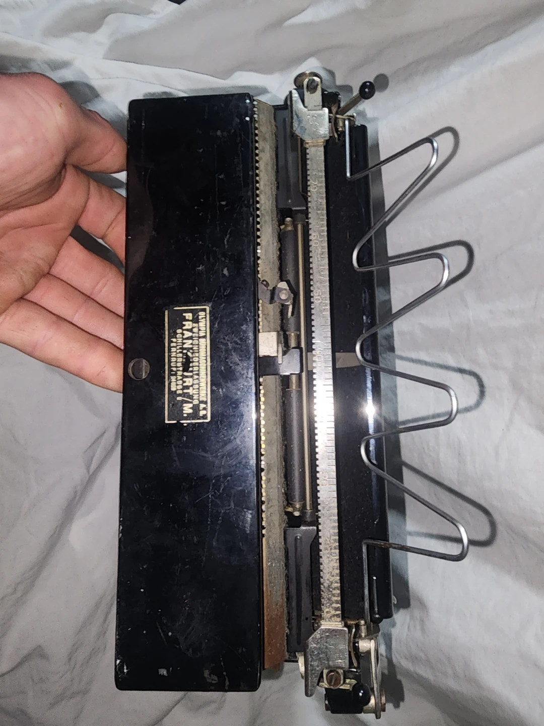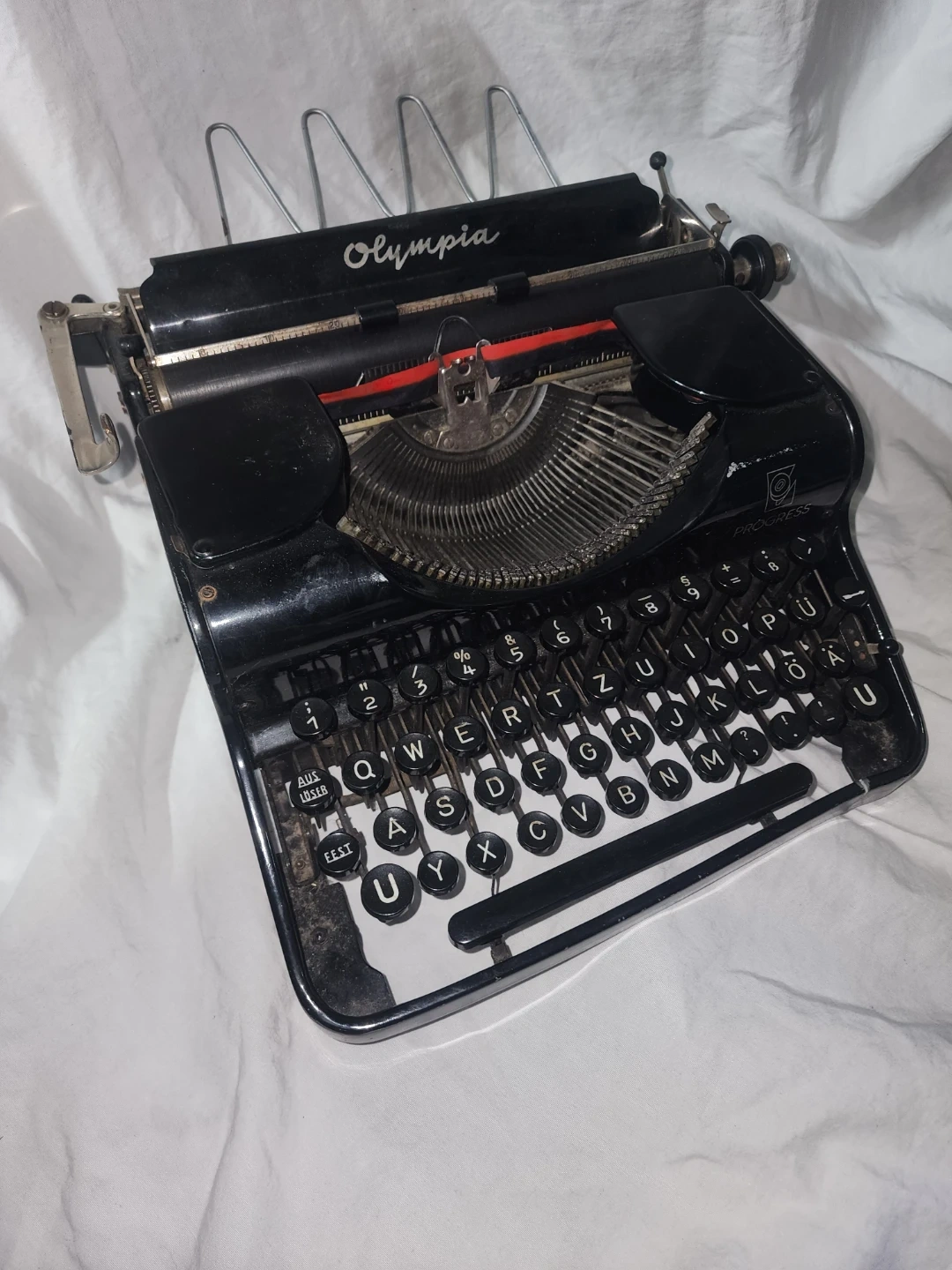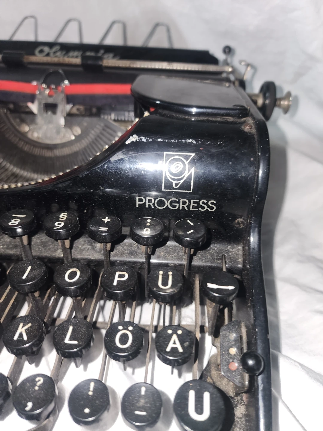 This is a vintage Olympia PROGRESS typewriter. It's a mechanical device made of metal. This machine would be useful for anyone interested in antique office equipment. Serial #312141. With the exception of the cracked front housing just below the space bar and a few scratches it's in excellent condition. Circa 1940 Germany. Very rare. Selling as is.