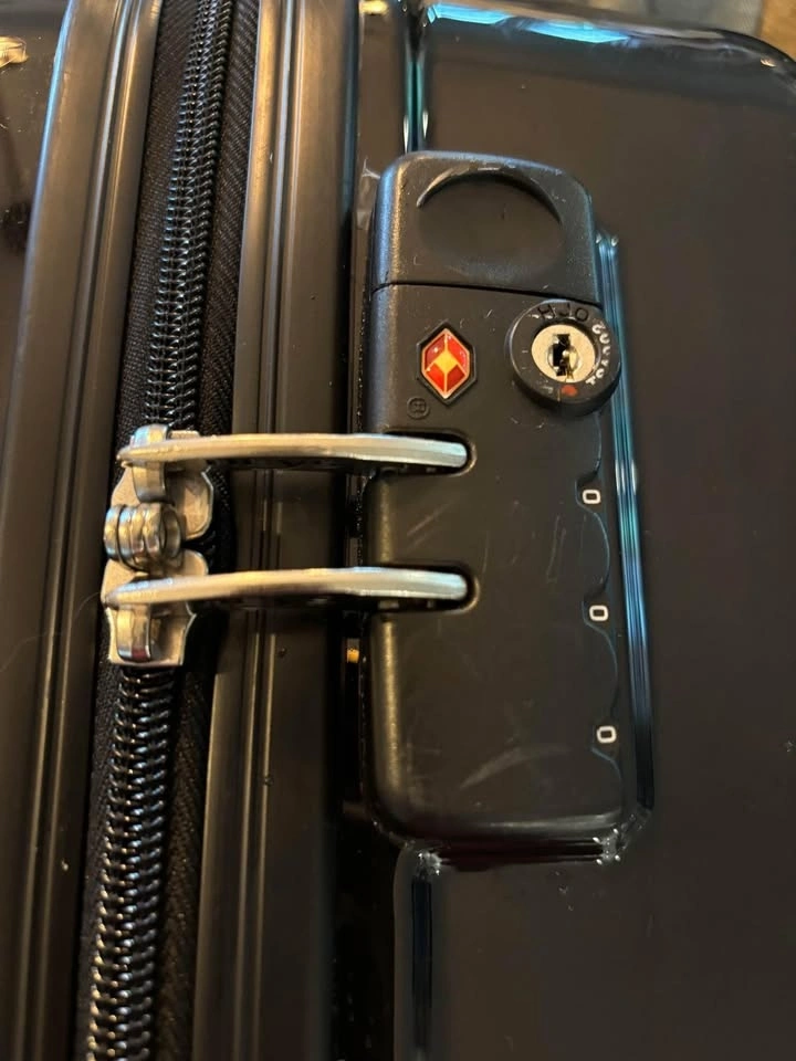 21-inch (21 x 15 x 9). Approx 7 pounds. Very spacious and durable. Features TSA lock, top and side handles, push-button telescopic handle, and 360-degree spinner wheels. Hard-shell luggage made of polycarbonate/ABS.