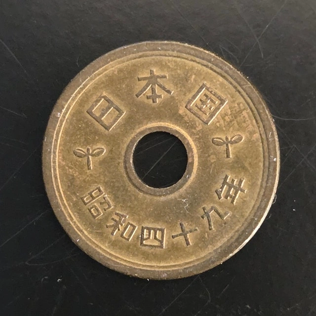 This listing is for a Japan 5 Yen coin from 1974. The picture shows the actual coin you will receive. It is a circulated, ungraded coin, made in Japan. Condition: Used - Good. Cash accepted. Curbside pickup available.