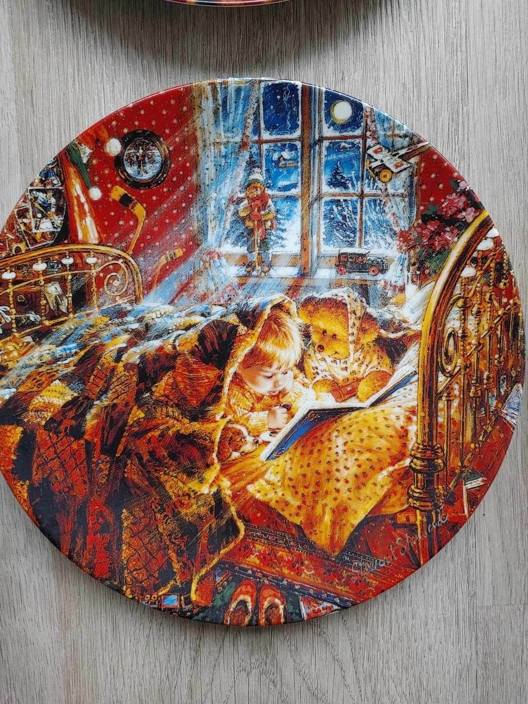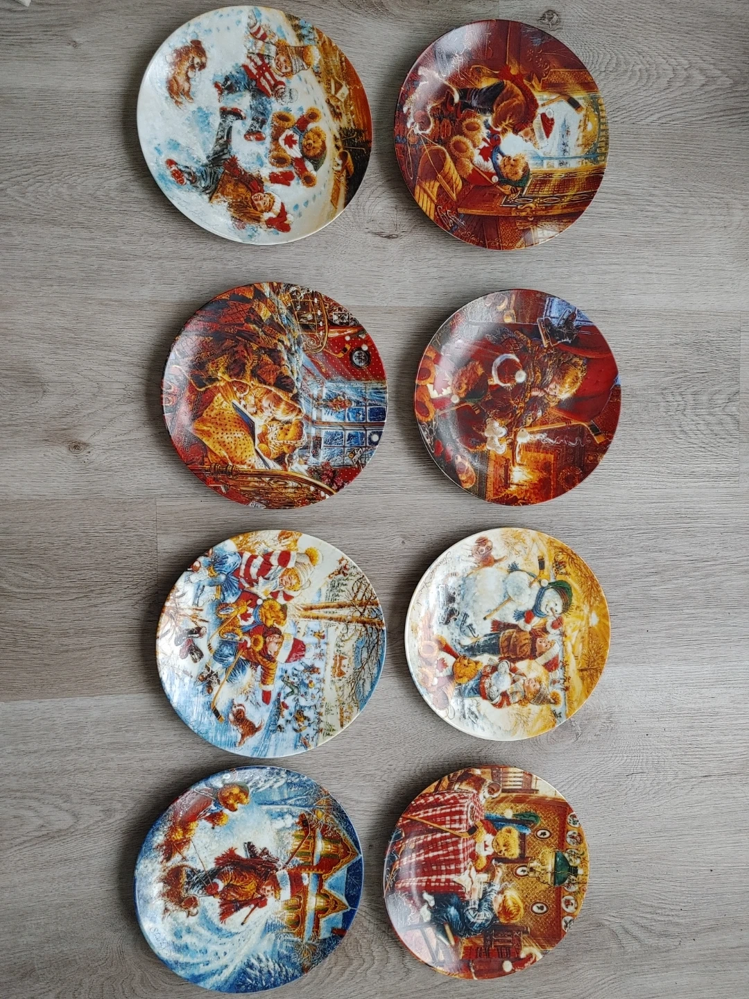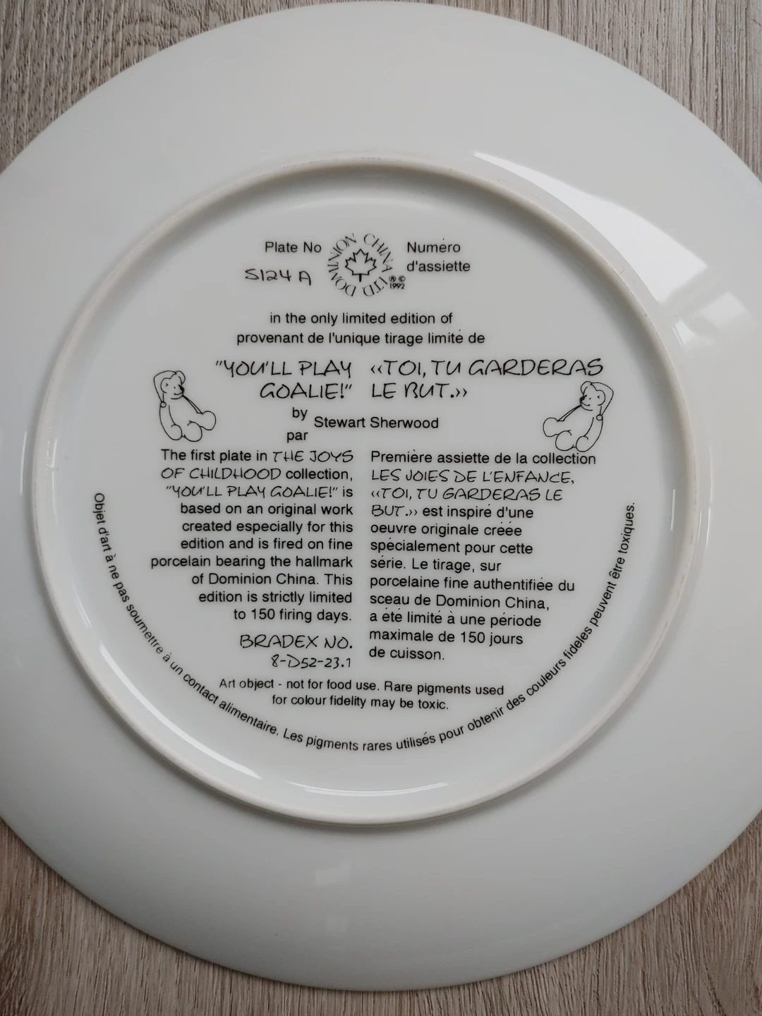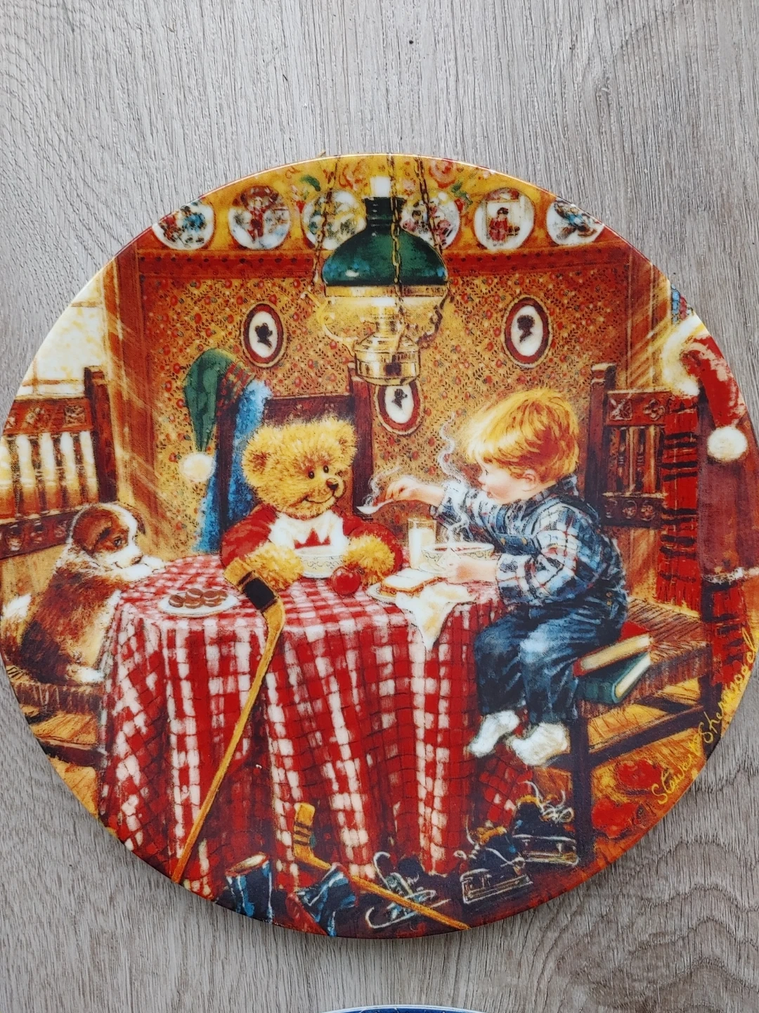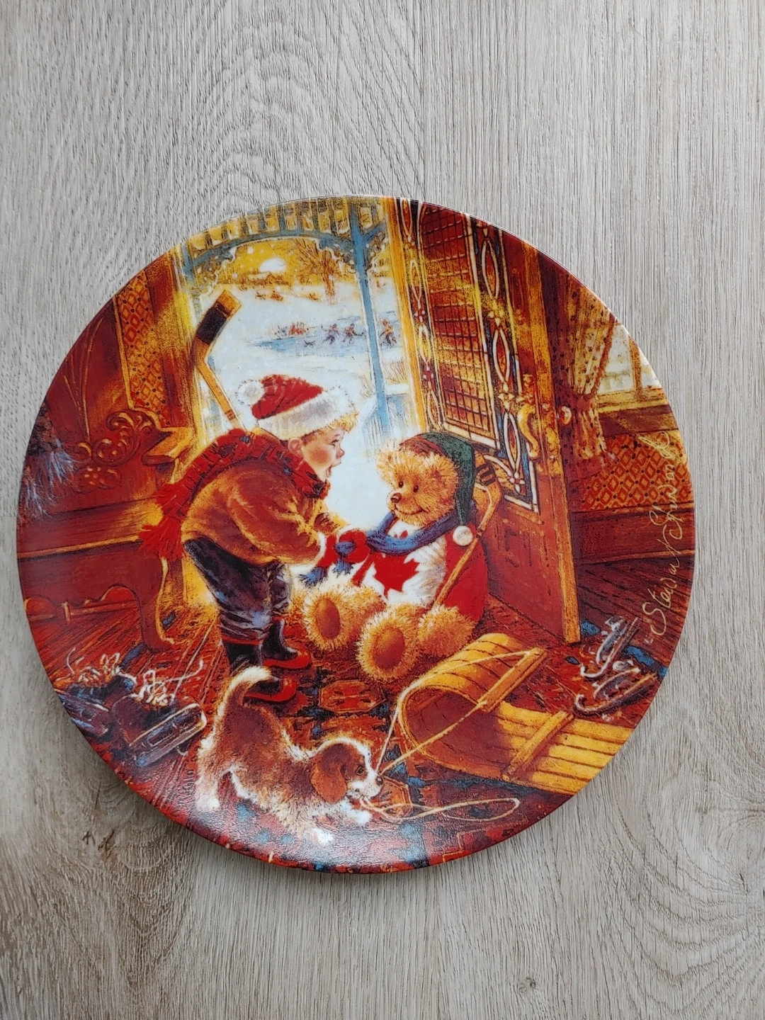 The series The Joys of Childhood collection by Stewart Sherwood. It's based on the original work depicting a young Canadian boy and his Teddy Bear enjoying all the things of our Canadian winter. The edition is strictly limited to 150 firing days. This art object is not for food use. This set has always been displayed in a glass cabinet.