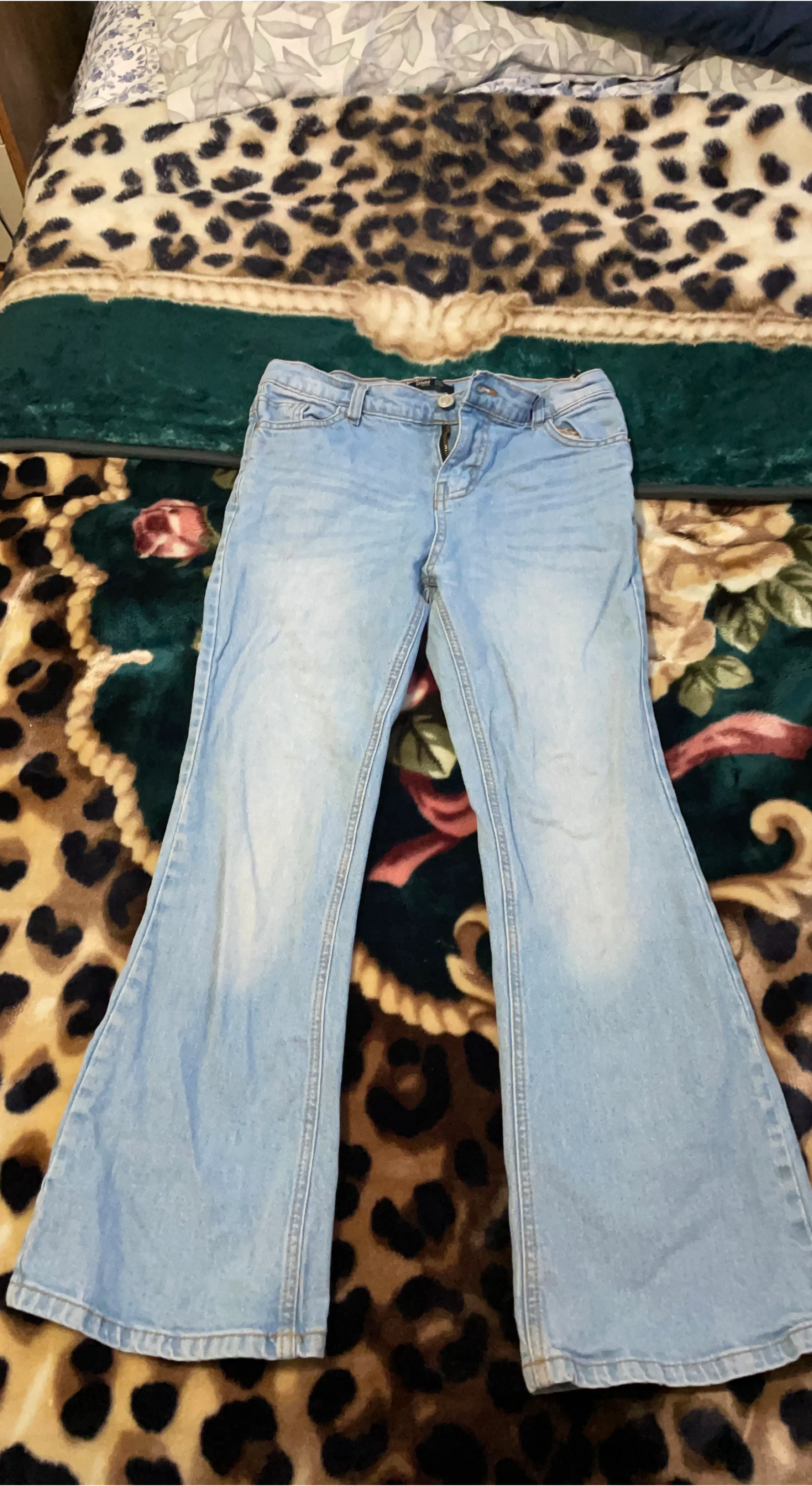 DNM Splash light wash flare jeans. These jeans are a size US 9/UK 40/EU 40. Made from denim. Perfect for a casual outfit!