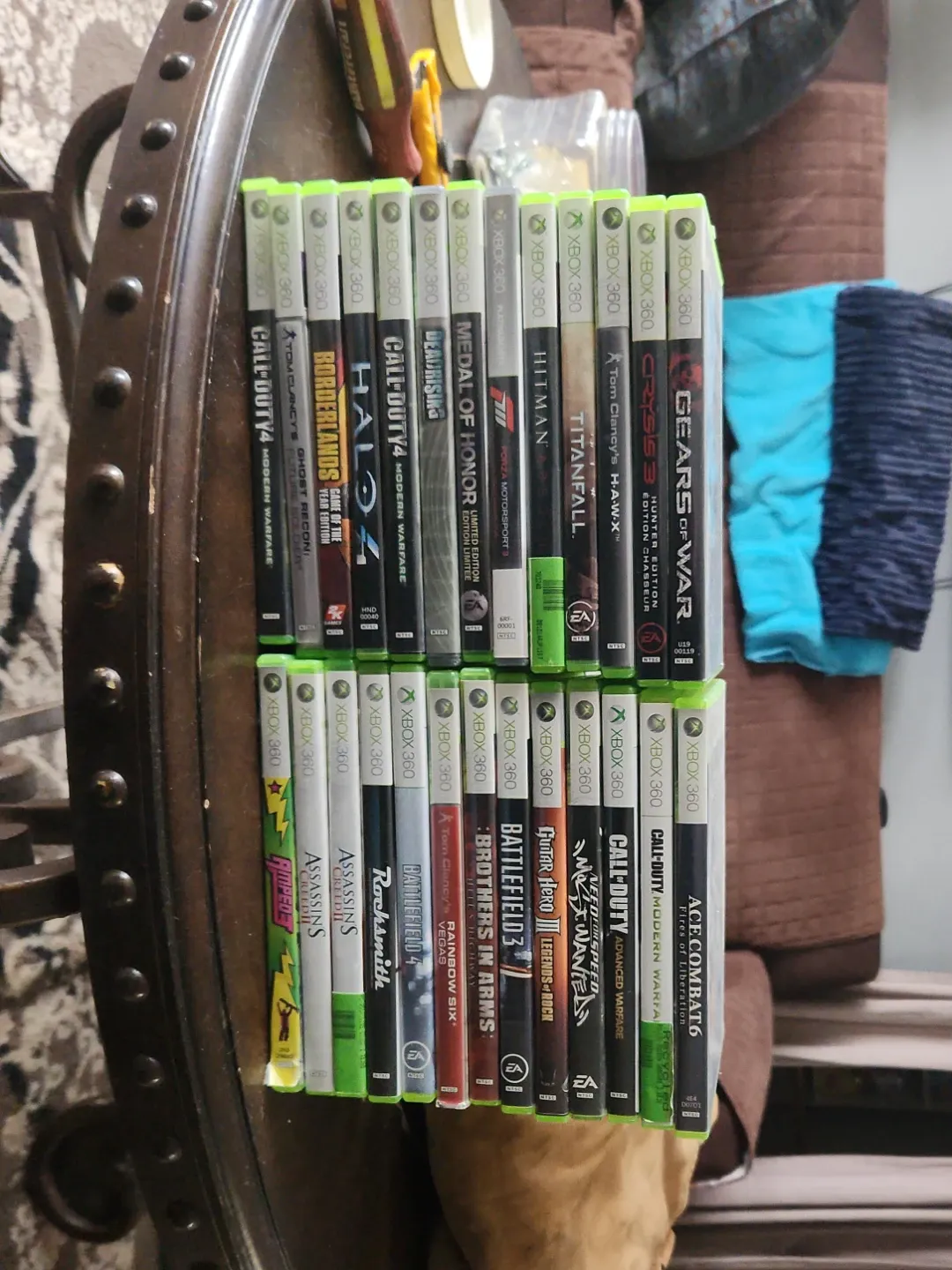 Collection of Xbox 360 video games including Call of Duty, Halo, Gears of War, and more. Various titles available for hours of gameplay. These are disc-based games for the Xbox 360 console.
