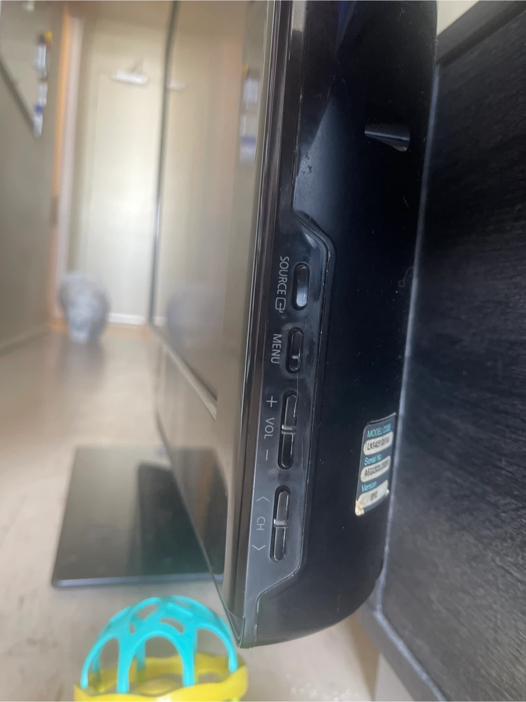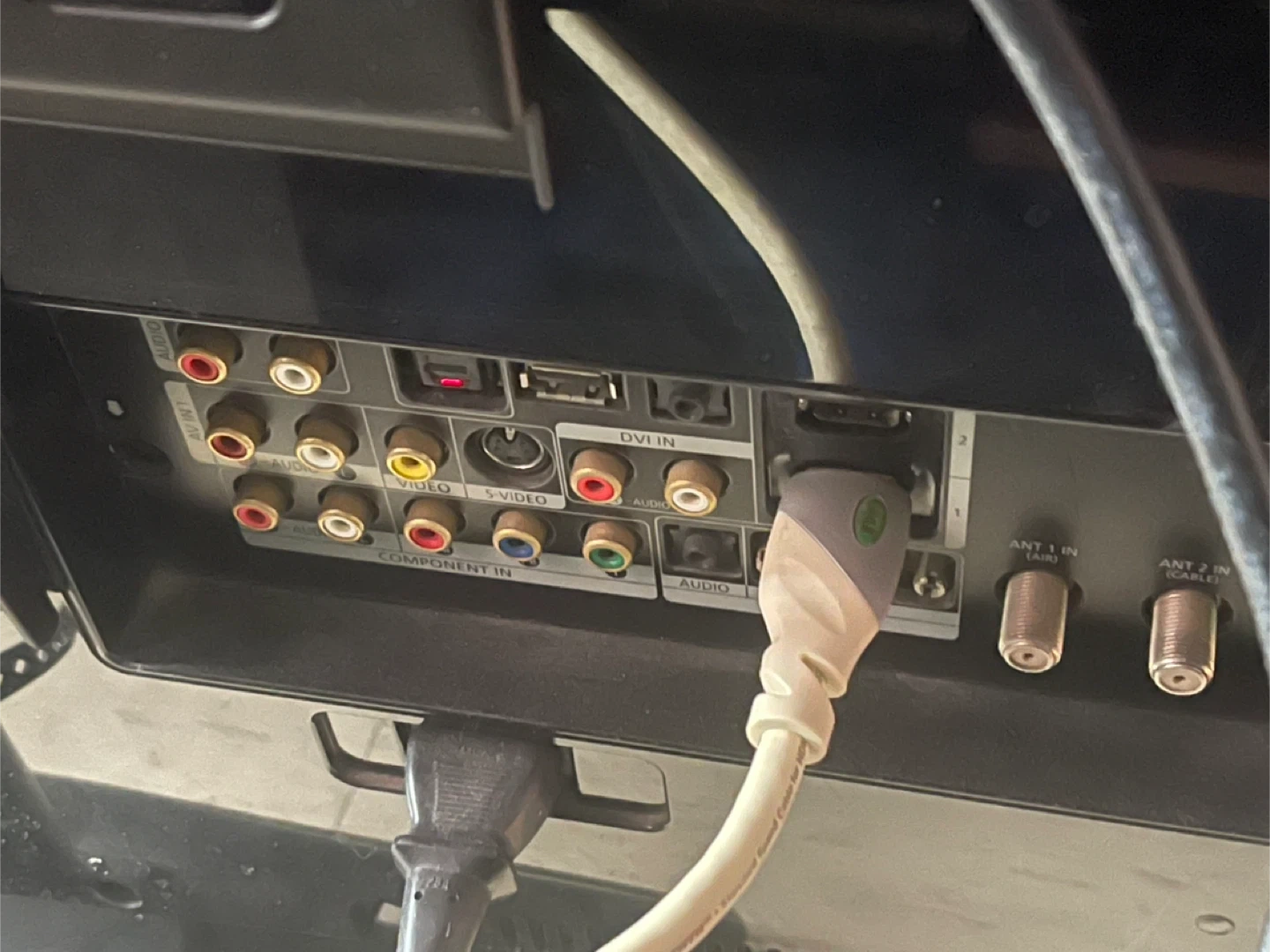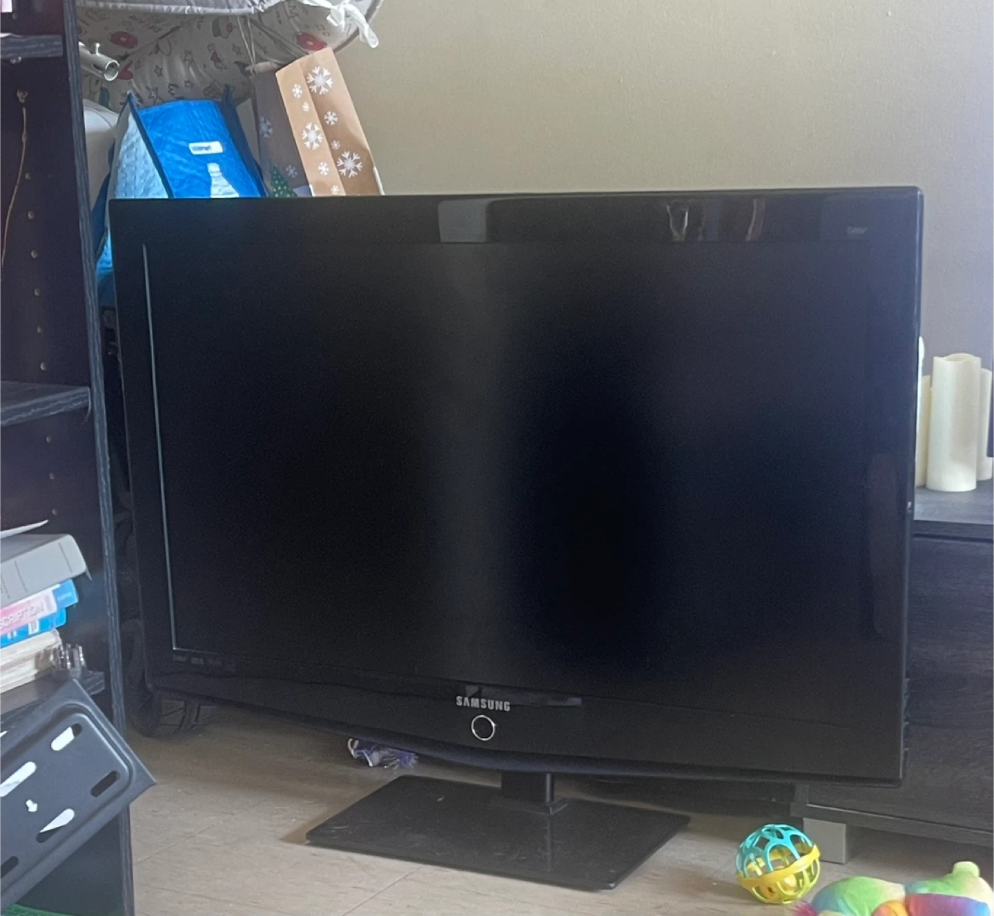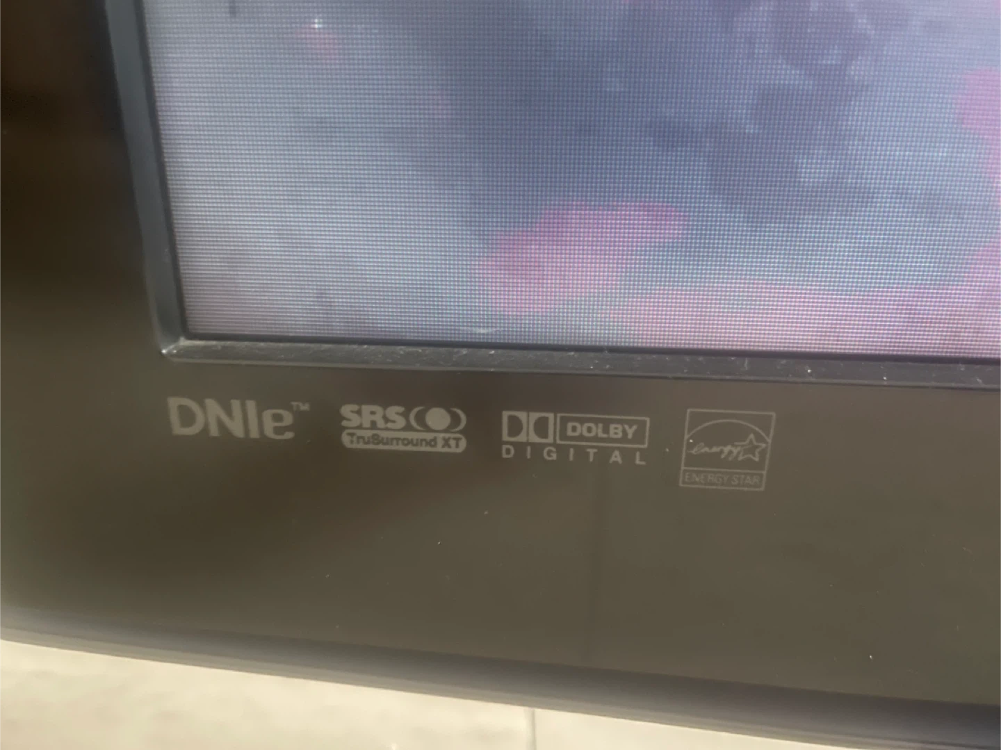 Samsung flat screen TV. It has multiple inputs including HDMI, DVI, Component, S-Video, and Audio. Also features SRS TruSurround XT and Dolby Digital sound.