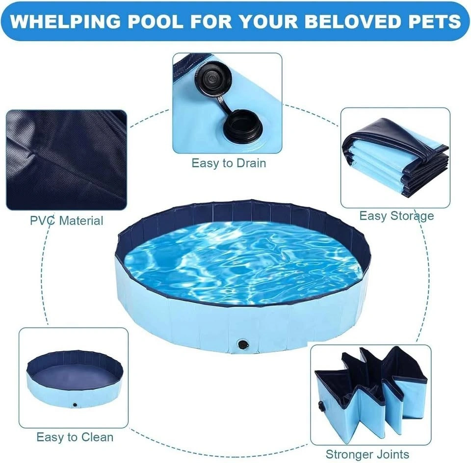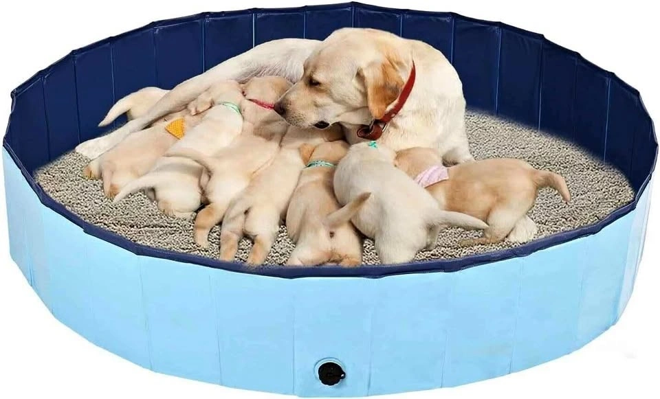 Dog Whelping Box, Foldable Pool (Blue)