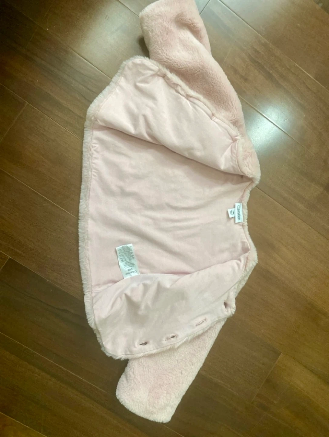 Cozy girl pink faux fur jacket It features a soft lining and wooden button closures. Super warm and cuddly!