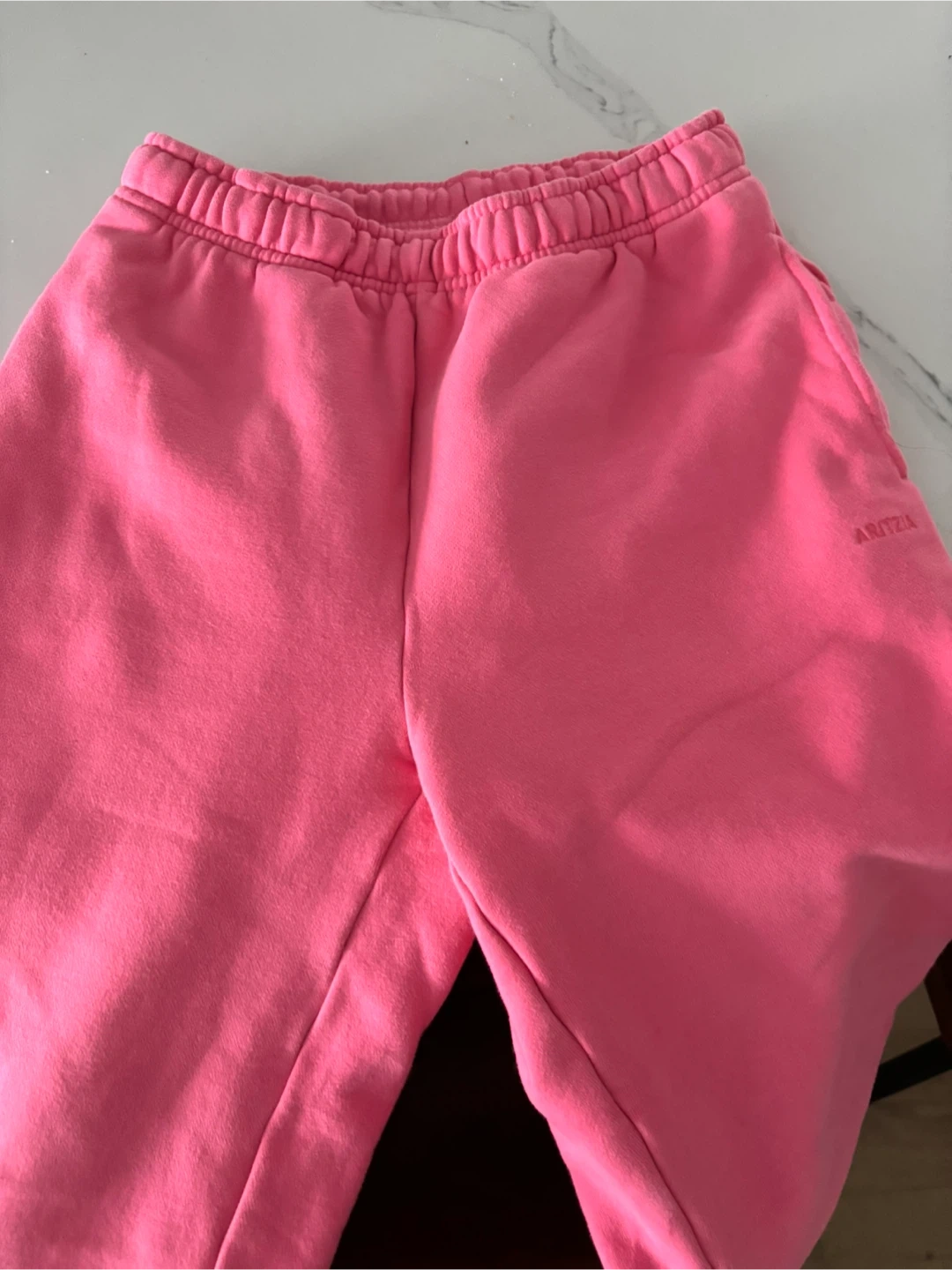 These Aritzia sweatpants are made with cozy fleece for ultimate comfort. They're a size 2XS and were made in Cambodia. These pants are great for lounging around the house!
