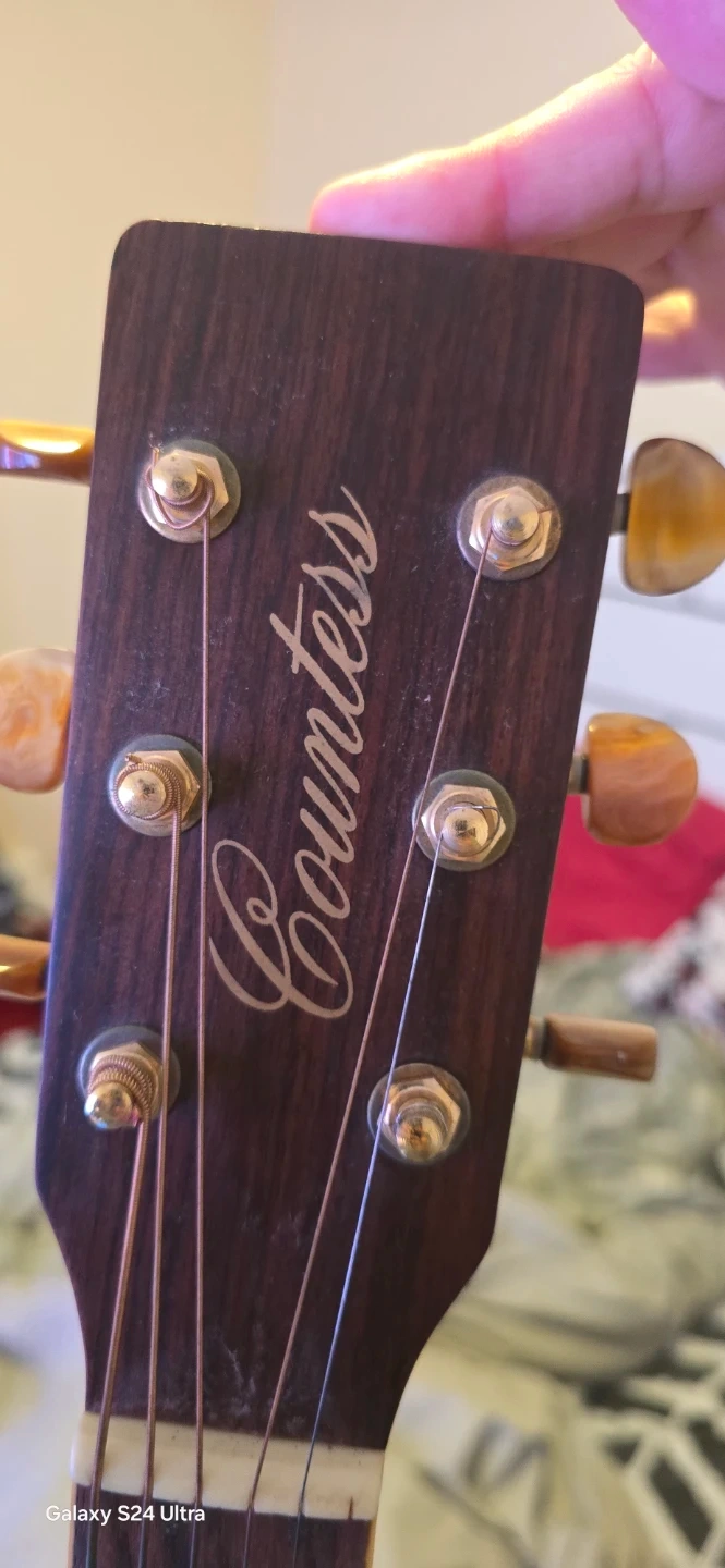 Body shape: Typically Grand Auditorium (medium, comfortable body) or Dreadnought (traditional large body).