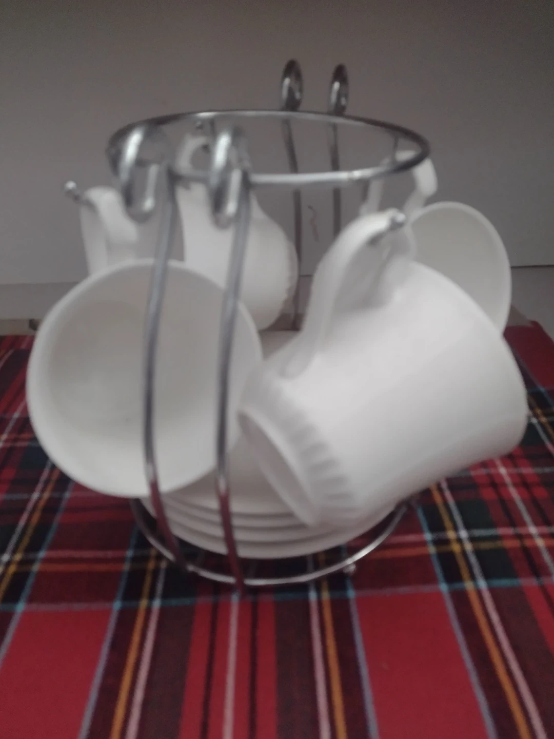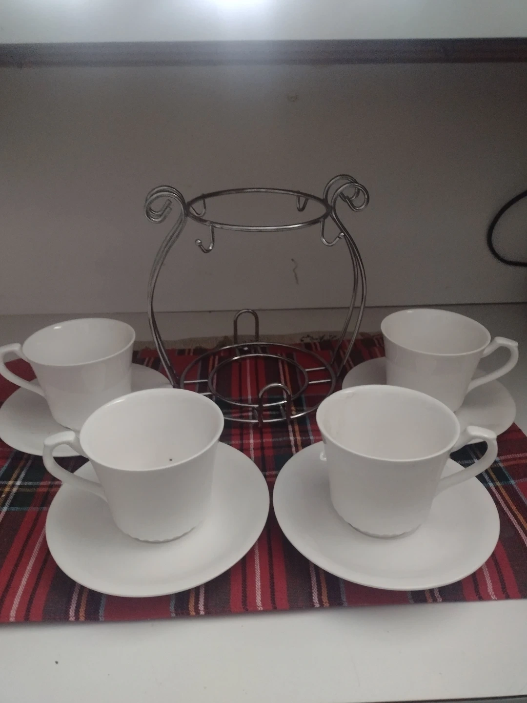 Buy & SellWhite Tea Cup and Saucer Set with StandWhite Tea Cup and Saucer Set with Stand$10Four white ceramic tea cups and saucers with a metal rack. White ceramic material. Each cup has a handle.ConditionLike newWHERE TO MEETHomeView MapSELLERverifiedDimitriMaryvale650 reviews0 chats·0 favorites·6 viewsSEND CHAT TO SELLERHi Dimitri! I’m interested in your listing.Hi Dimitri! I’m interested in your listing.Get the Karrot app to chatSign In to chat