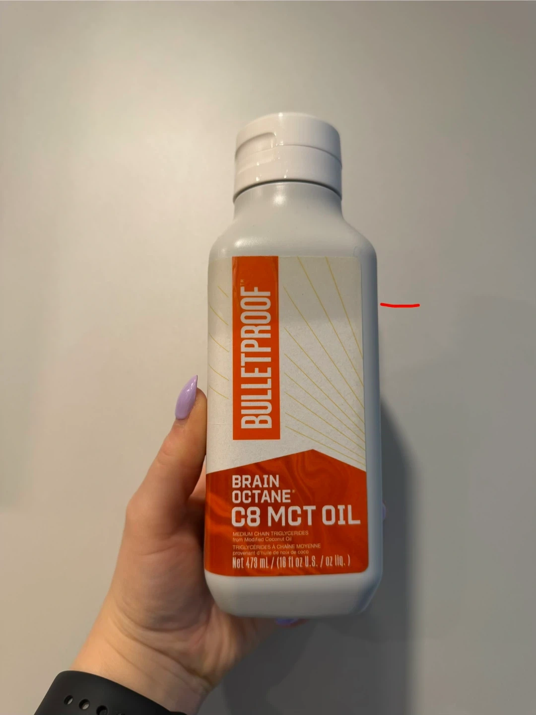 Bulletproof Brain Octane C8 MCT Oil. Made from modified coconut oil. It's opened but 3/4 full (see red line in photo).