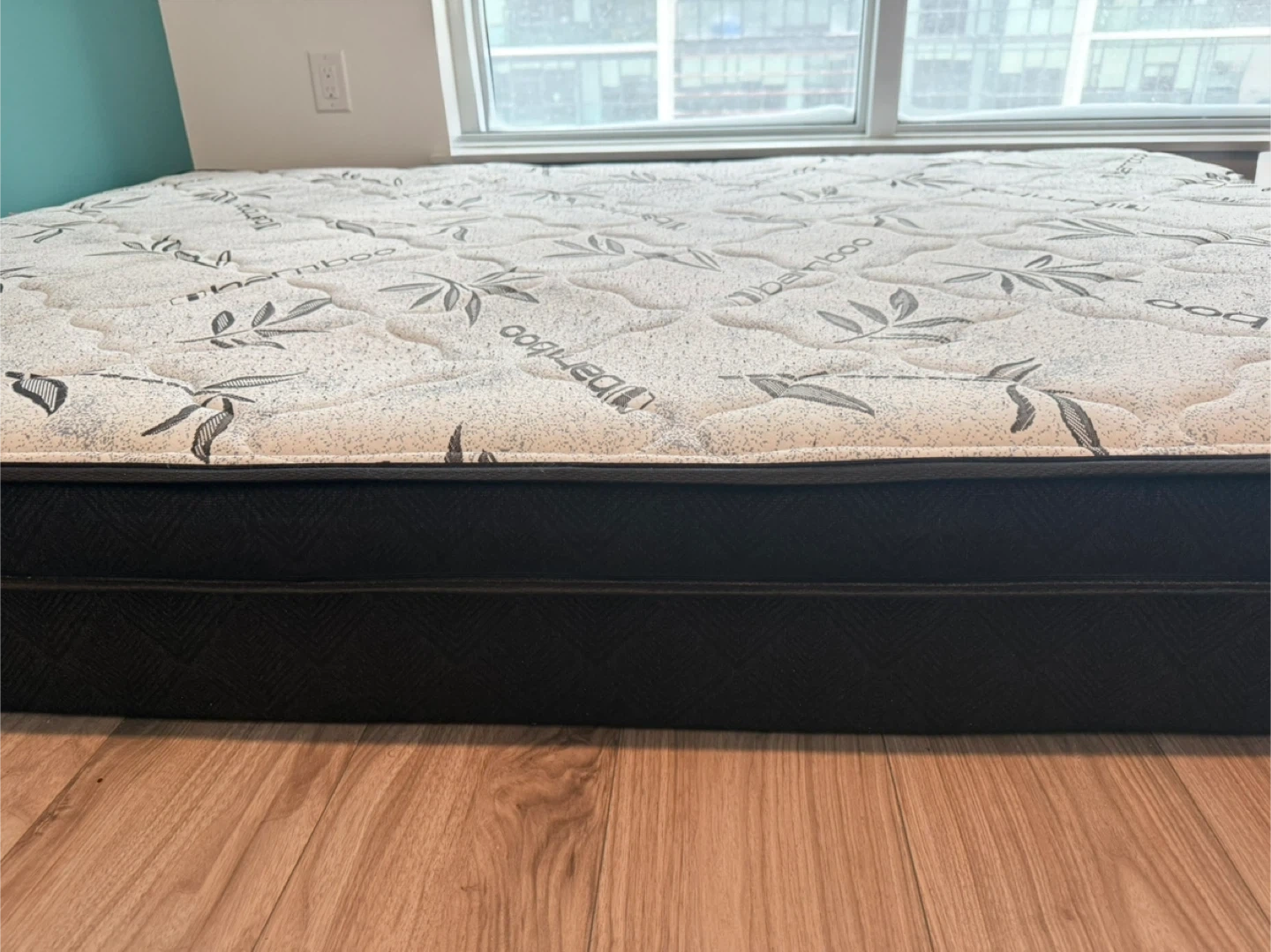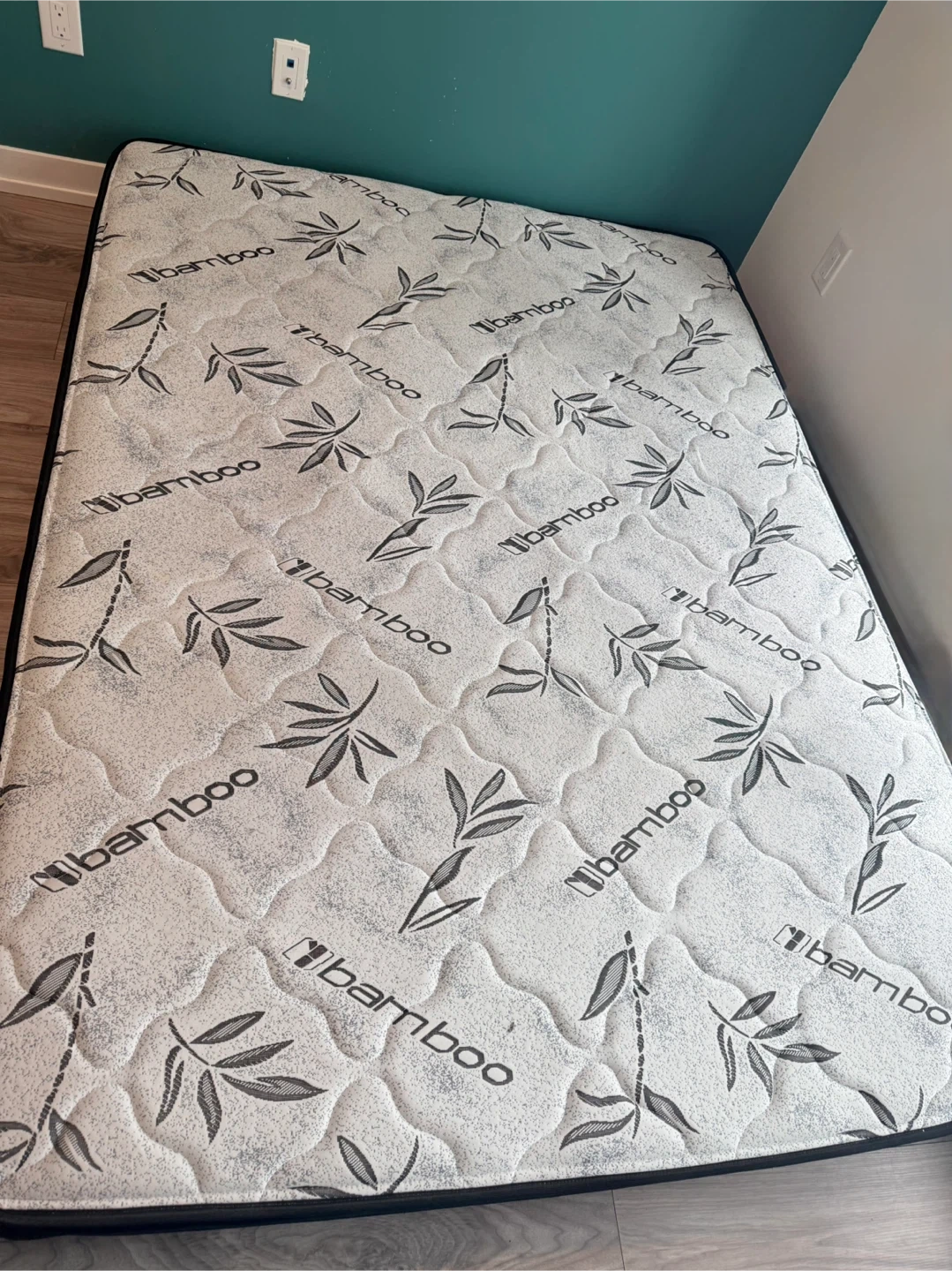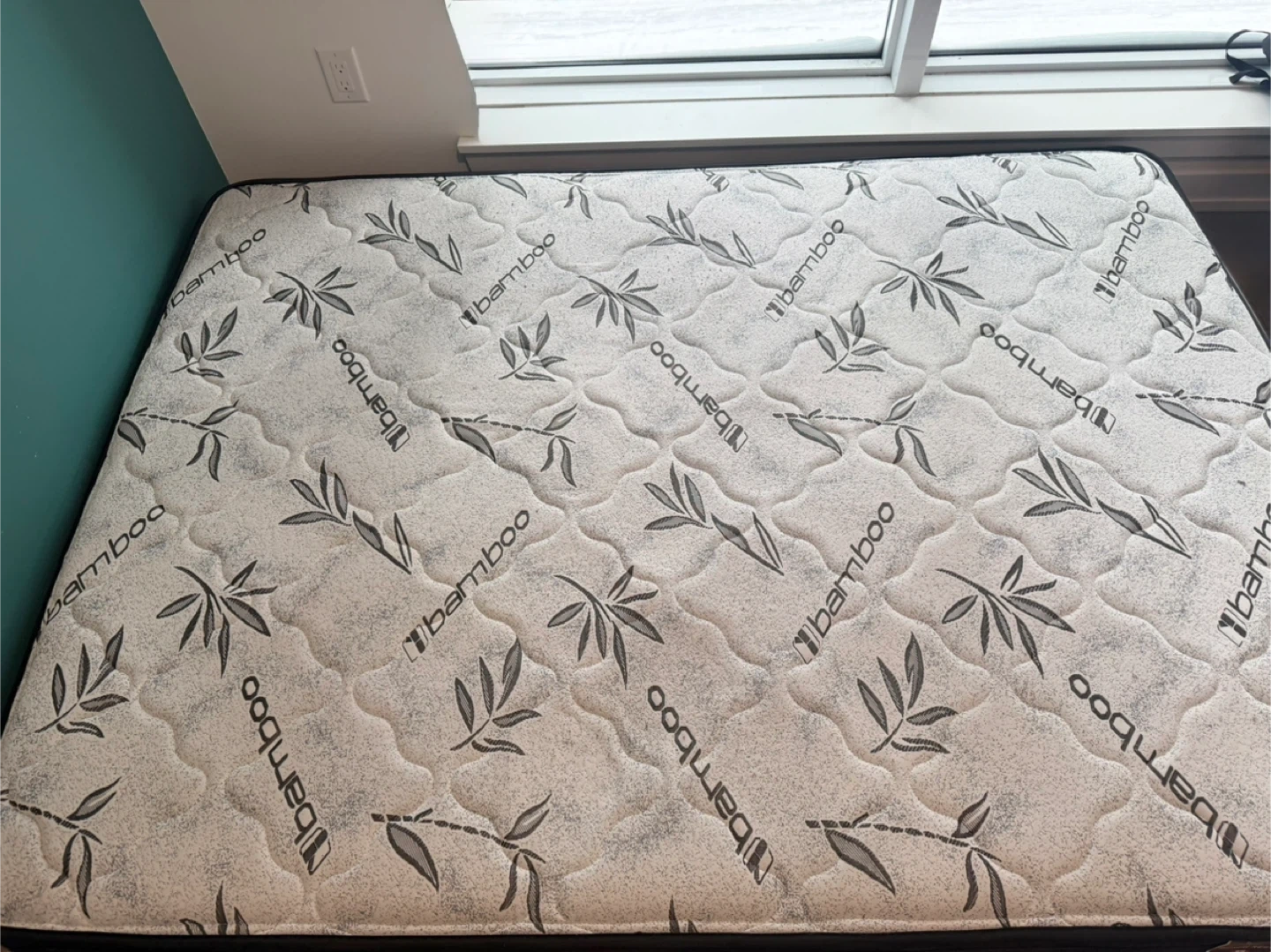 This is a bamboo mattress. It has a quilted top with a repeating bamboo leaf pattern. The sides are black.