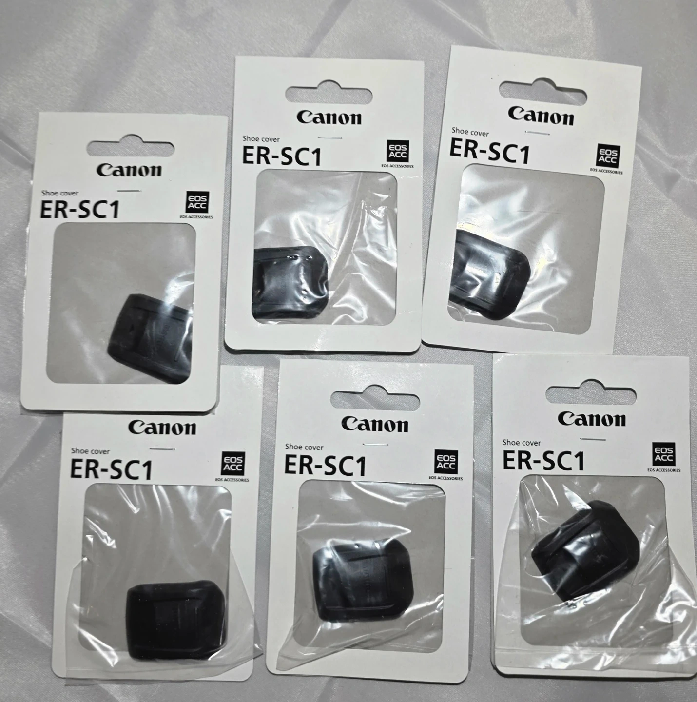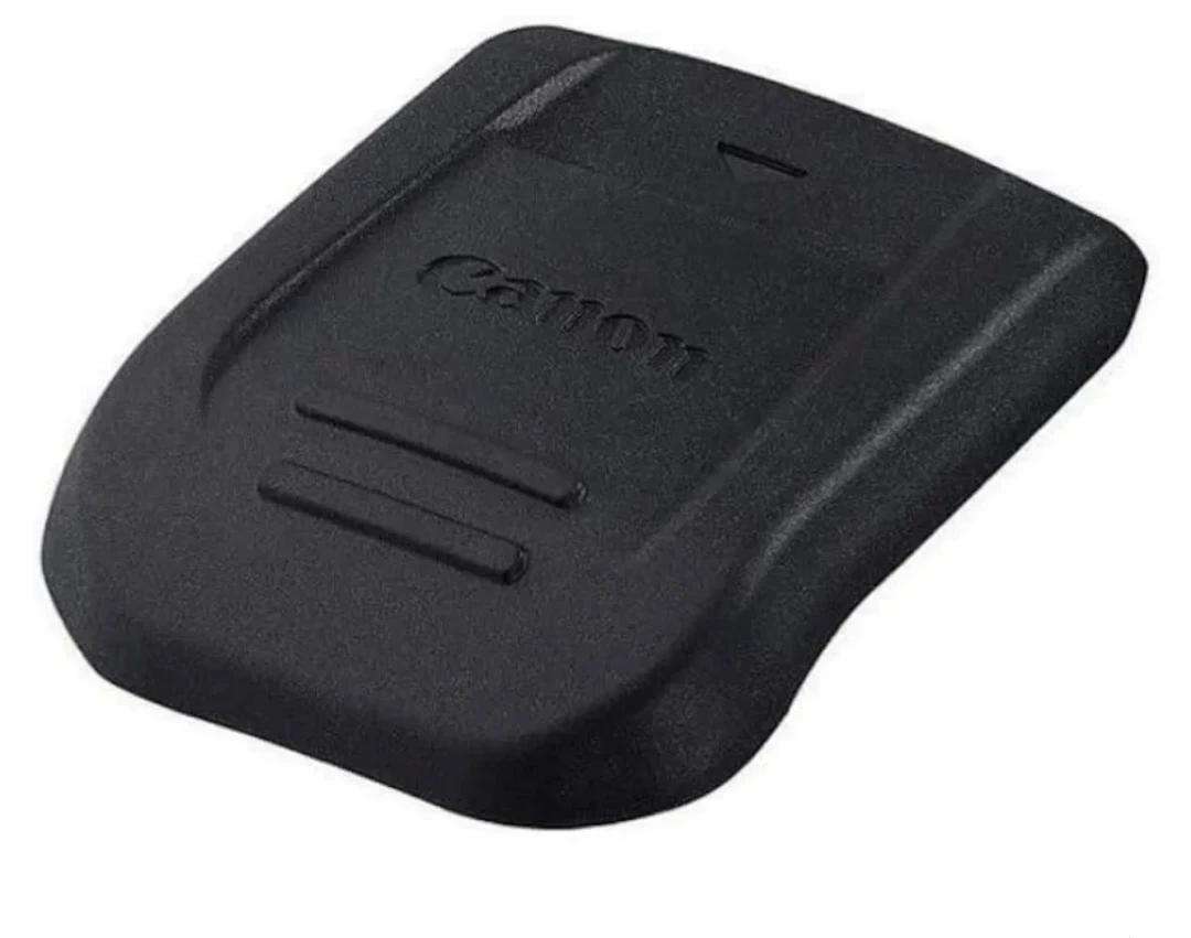 This is a Canon ER-SC1 shoe cover designed for EOS cameras. It's made of durable black plastic. This cover protects the camera's hot shoe contacts when not in use. It's a small, essential accessory for photographers.